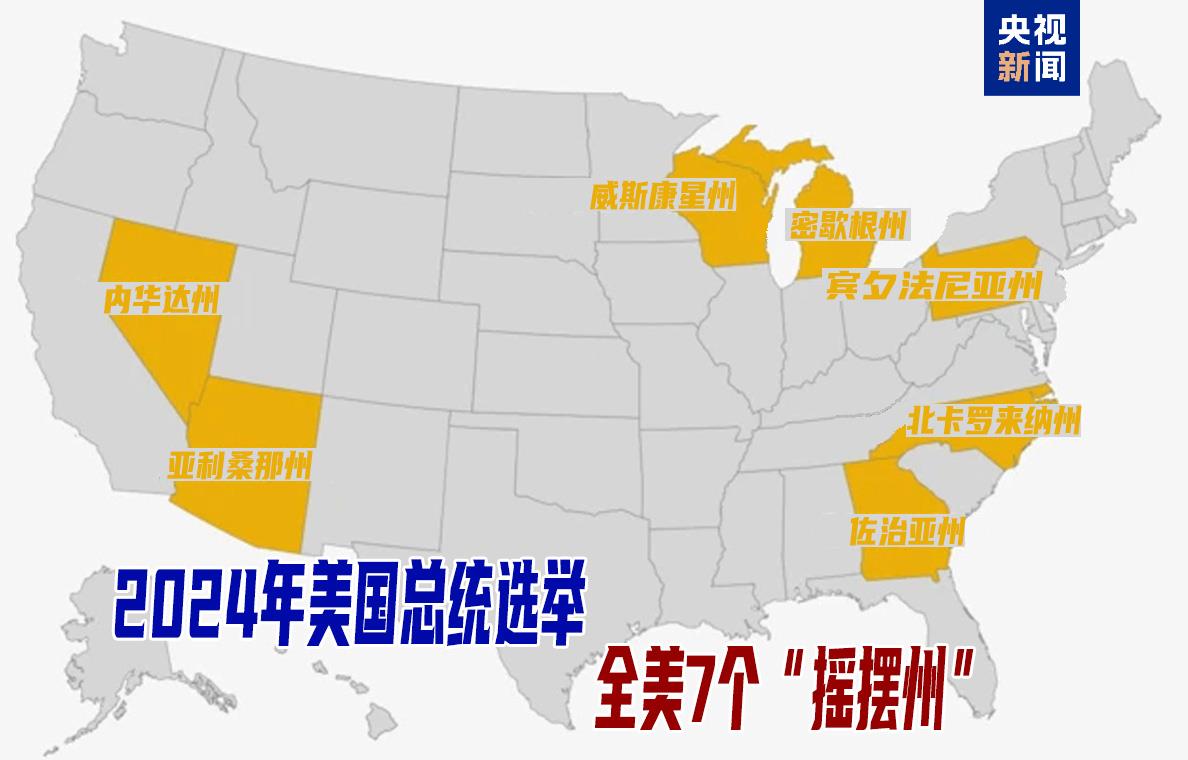 在“赢家通吃”规则的影响下,这反而让一些立场并不明显的“摇摆州”成为决定总统大选走向的关键。在2024年美国总统选举中,目前有7个关键“摇摆州”,分别是北卡罗来纳州、佐治亚州、宾夕法尼亚州、密歇根州、亚利桑那州、威斯康星州、内华达州。