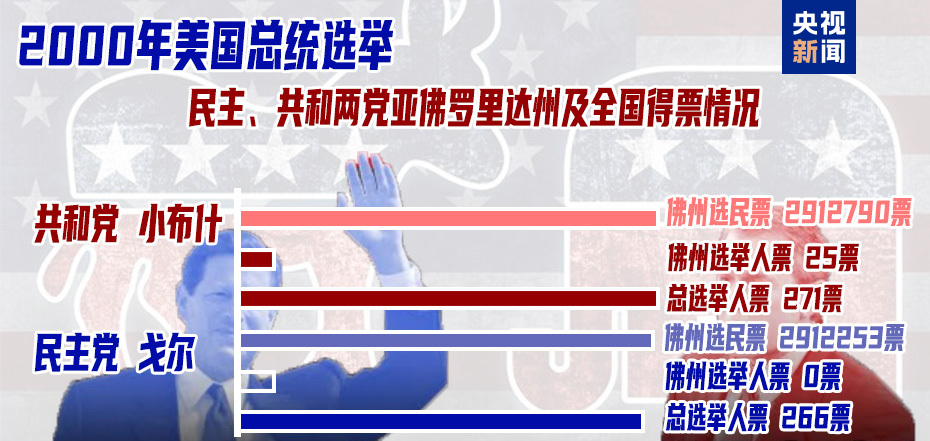 比如,2000年的美国总统大选中,佛罗里达州共有25张选举人票。当时,在该州代表共和党的小布什仅比代表民主党的戈尔多出537张普选票(总计近600万张普选票),这是非常小的差距。但根据佛罗里达州的“赢者通吃”规则,小布什赢得了该州的25张选举人票。最终,小布什凭借271票选举人票的微弱优势击败了戈尔,赢得当年的美国总统大选。