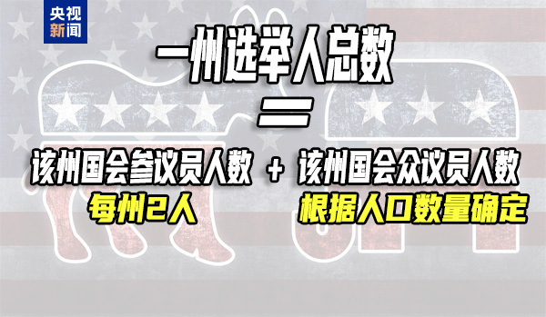 但是具体到各州上,就产生了不少区别。各州选举人团的建立与该州在美国国会参众两院的议员人数挂钩,即: