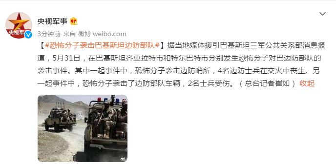 据当地媒体援引巴基斯坦三军公共关系部消息报道,5月31日,在巴基斯坦齐亚拉特市和特尔巴特市分别发生恐怖分子对巴边防部队的袭击事件。