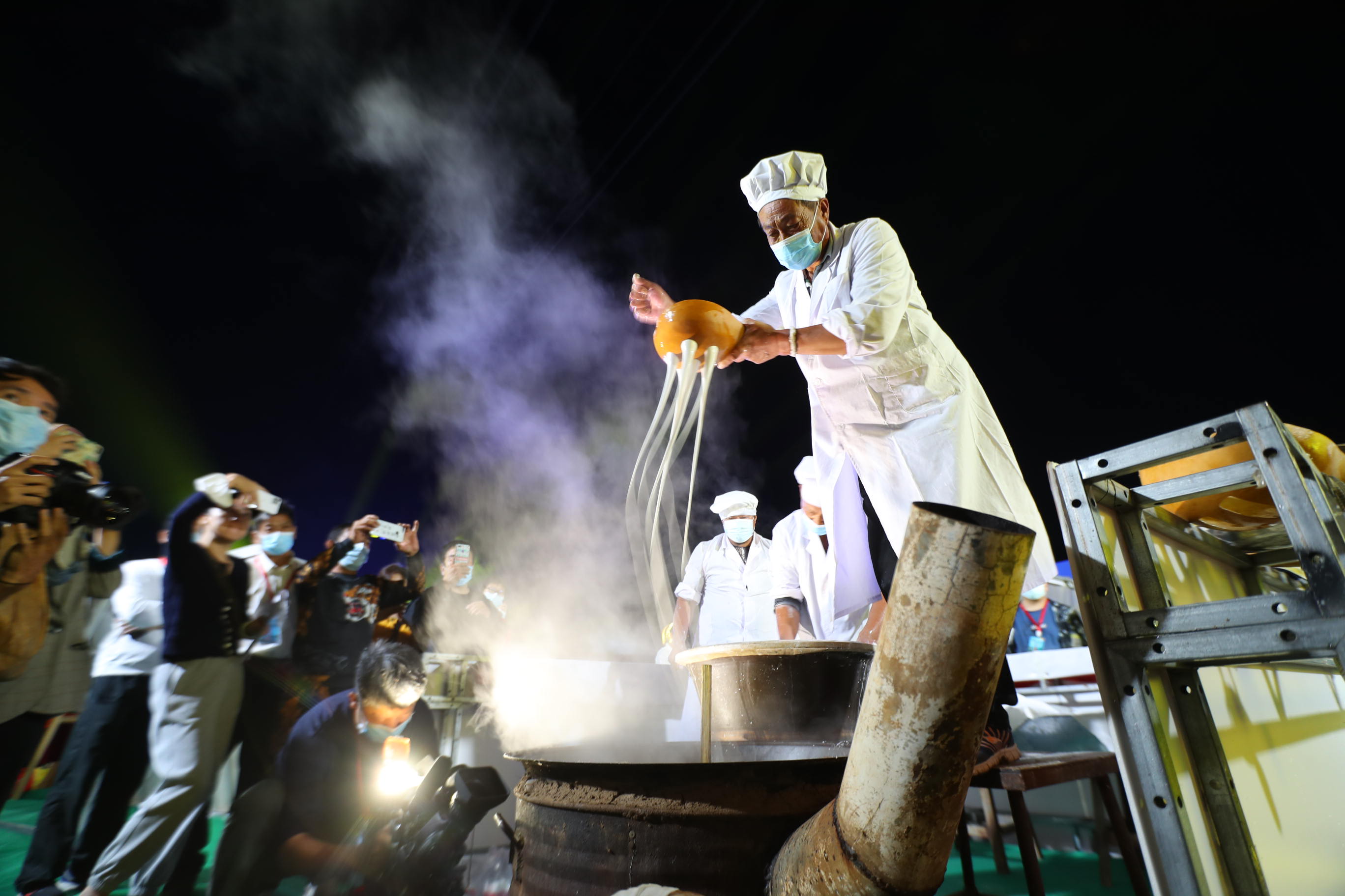 本届红薯文化节开幕恰逢中秋佳节,因此现场还举办了赏月会。夏各庄镇传统的手工漏粉技艺、牙木雕刻技艺等都被搬上了舞台。