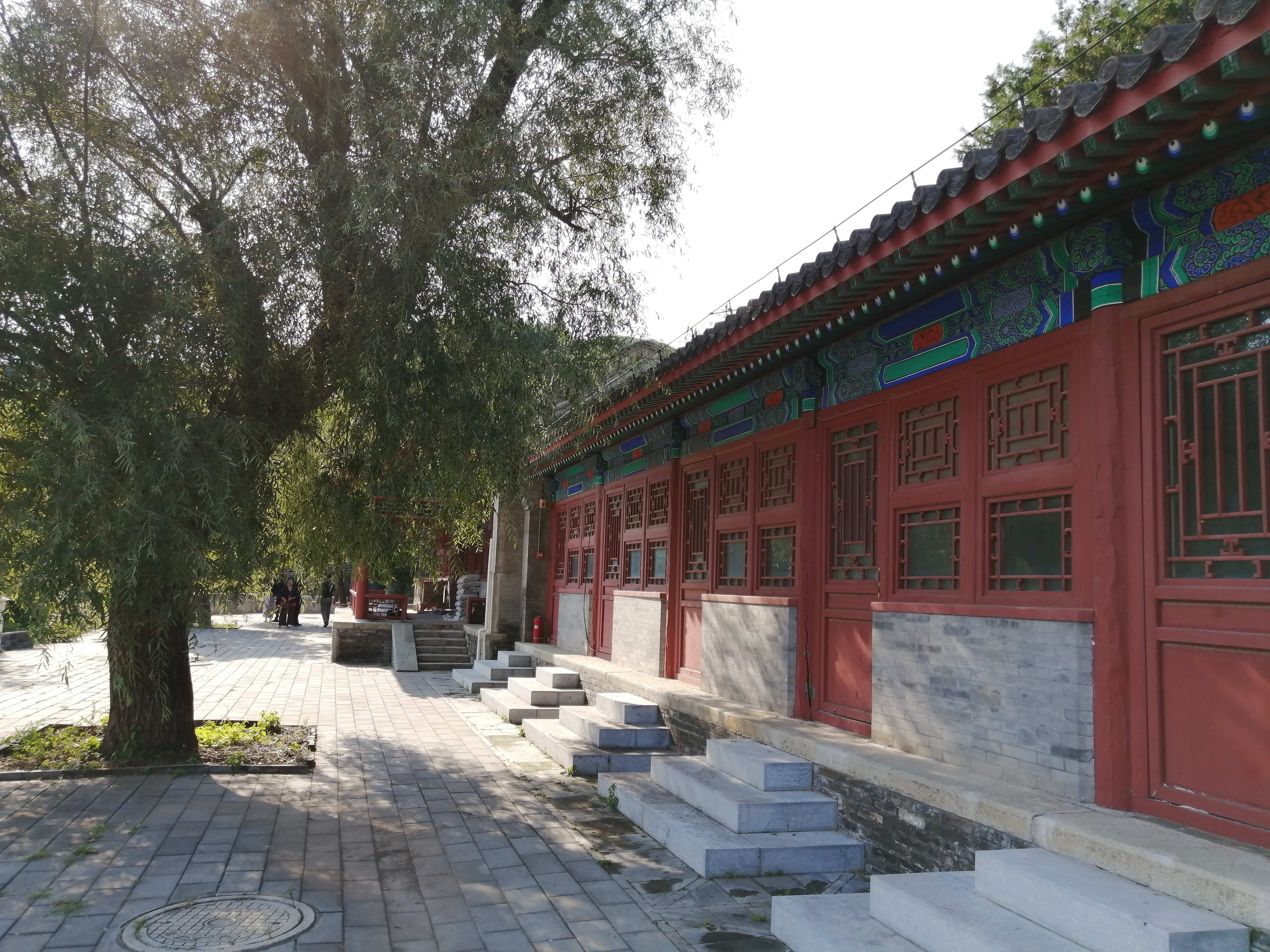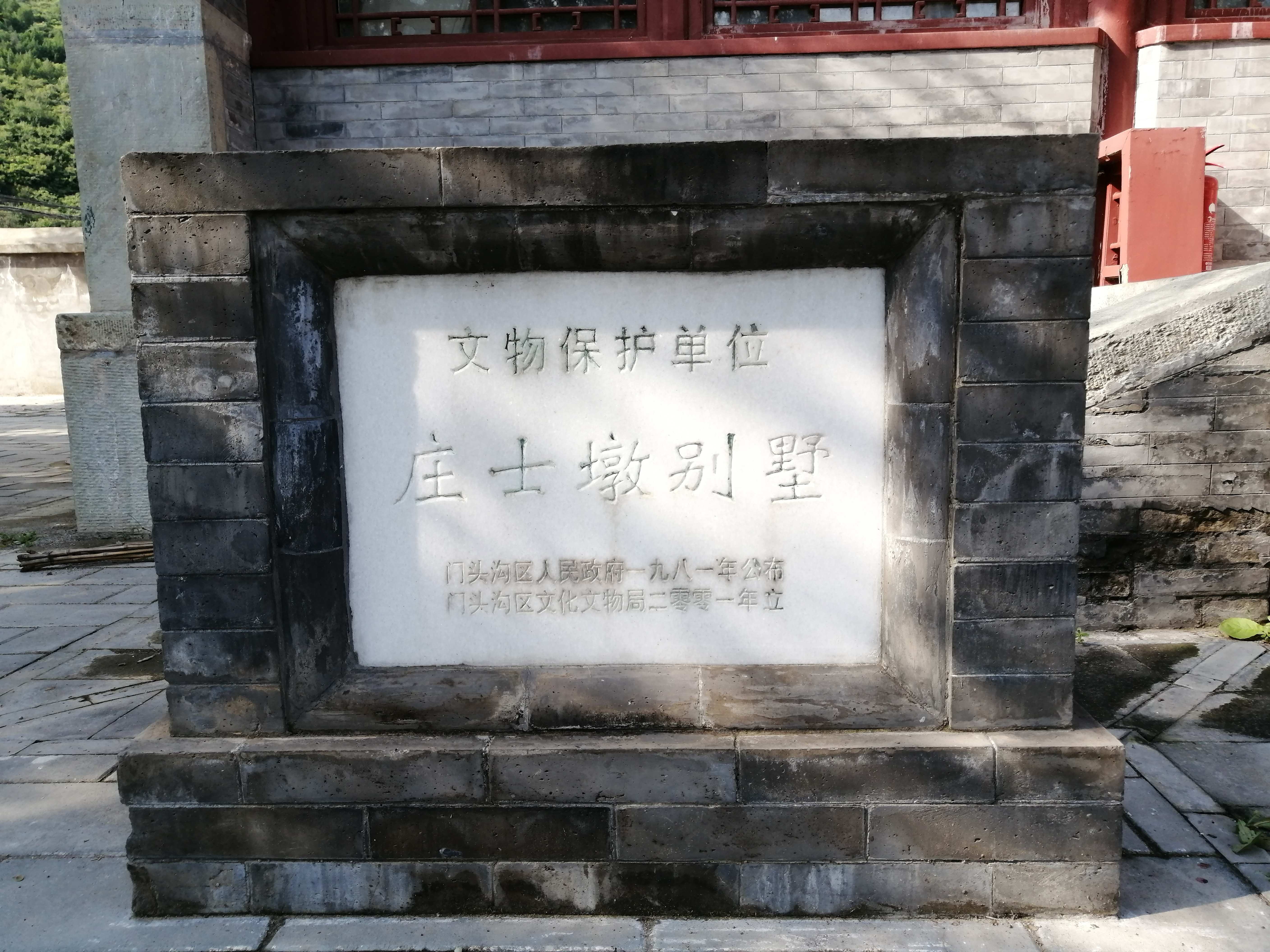 站在那排仿古建筑前,我四处踅摸,看有无古迹。我寻找的同时,一个戴校徽的女大学生也在寻找。蓦地,她惊喜地叫道,找到标志了。原来,那排房子西端的台阶旁边,有一块青砖垒砌的标识碑,上面刻着“文物保护单位——庄士敦别墅”,落款为“门头沟区人民政府一九八一年公布,门头沟区文化文物局二零零一年立”。