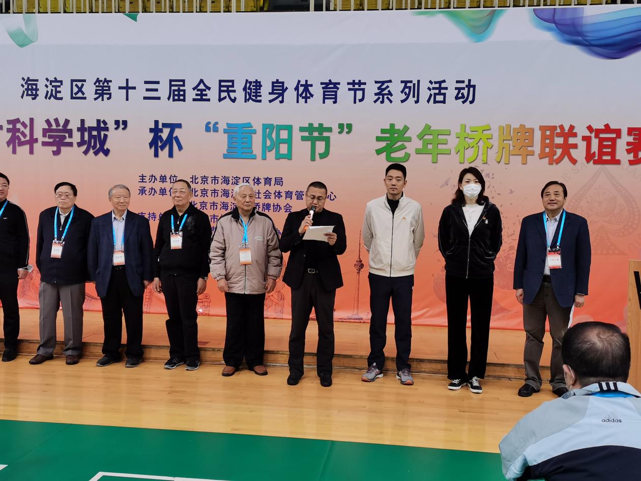 赛前举行了简短的开幕式。海淀区体育局梁志刚副局长和原全国人大外事委员会马文普副主任委员分别致辞。梁志刚说:“海淀体育局今后还将继续普及、推广、宣传桥牌,扩大桥牌影响力,带动更多的海淀人和中老年朋友积极投入到这项健康益智的运动中来。”