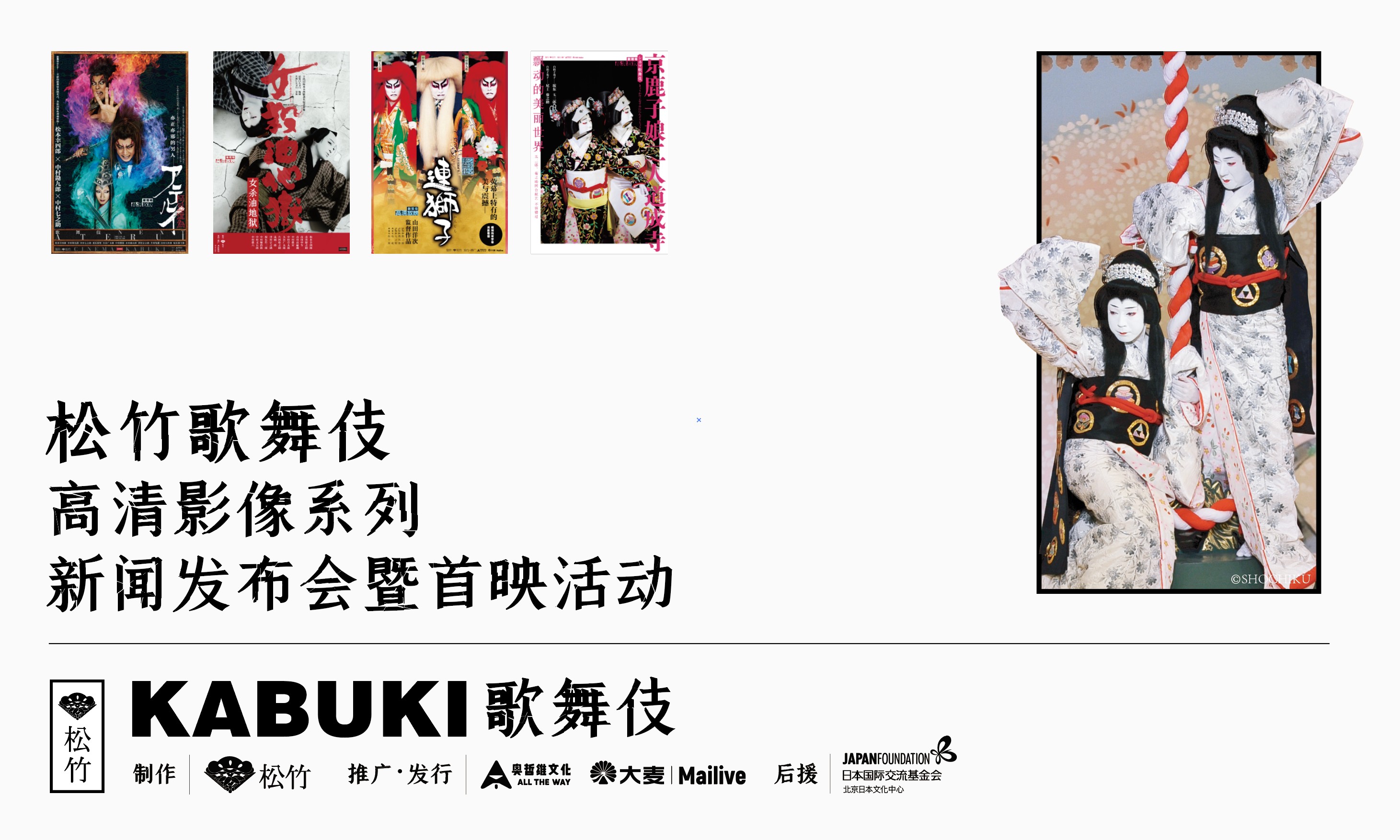 10月18日,在首都剧场举行的《京鹿子娘二人道成寺》特别首映活动,拉开了松竹歌舞伎高清影像系列落地中国的序幕。之后,北京天桥艺术中心、北京中间剧场也将进行多部松竹歌舞伎高清影像系列剧目的放映。