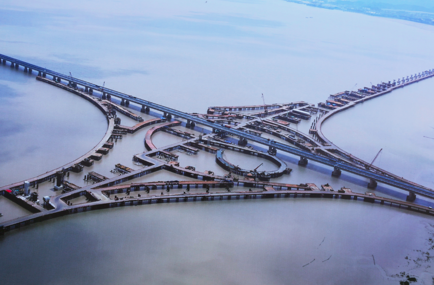 滨海枢纽互通工程是连接杭甬高速公路复线与甬舟高速公路的海上互通立交桥,由1条互通主线桥和8条匝道桥组成,主线总长1550米,匝道总长6387米,建成后将是亚洲最大的海上互通立交桥。同时它为我国乃至世界上在复杂地质条件下,海上修建大型交通枢纽工程提供了宝贵经验。