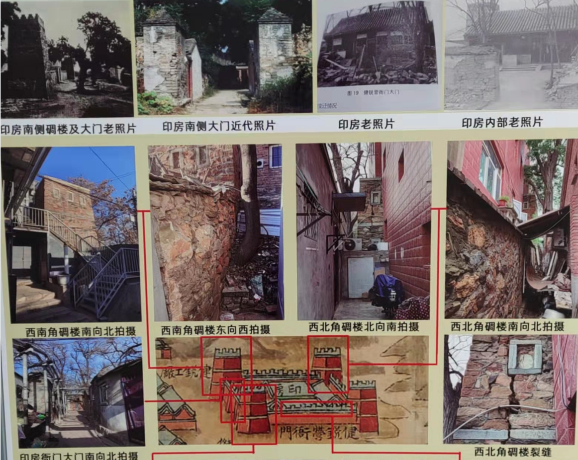 记者在现场看到,如今的八旗印房还留有大门两侧砖砌的门柱,西南、西北两个碉楼以及部分围墙,不过几乎都已经与民宅融为一体,有的成了院子的围墙,有的成了民宅的一面墙。
