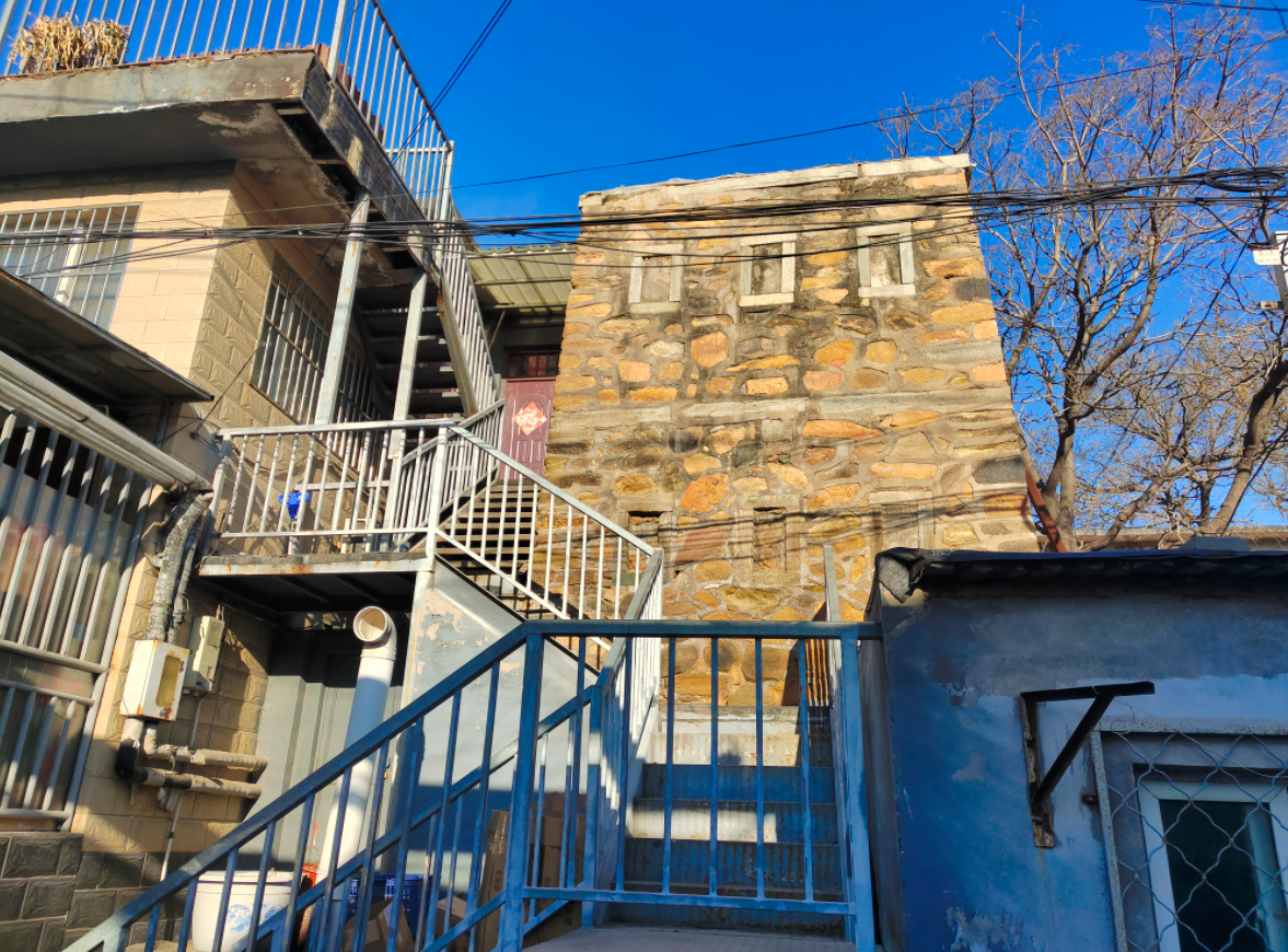 “不然下雨雨水都渗进去了,离着我们房子这么近,怕出危险。”一位居民说。碉楼西侧、北侧是二层的民居,上楼的楼梯就围着碉楼设置。