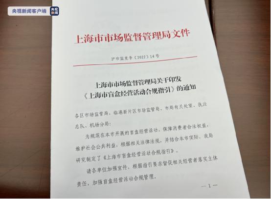 记者14日从上海市市场监管部门了解到,为了规范上海盲盒经营活动,保障消费者合法权益,上海市市场监管局根据相关法律法规,制定发布了《上海市盲盒经营活动合规指引》(下称《指引》)。