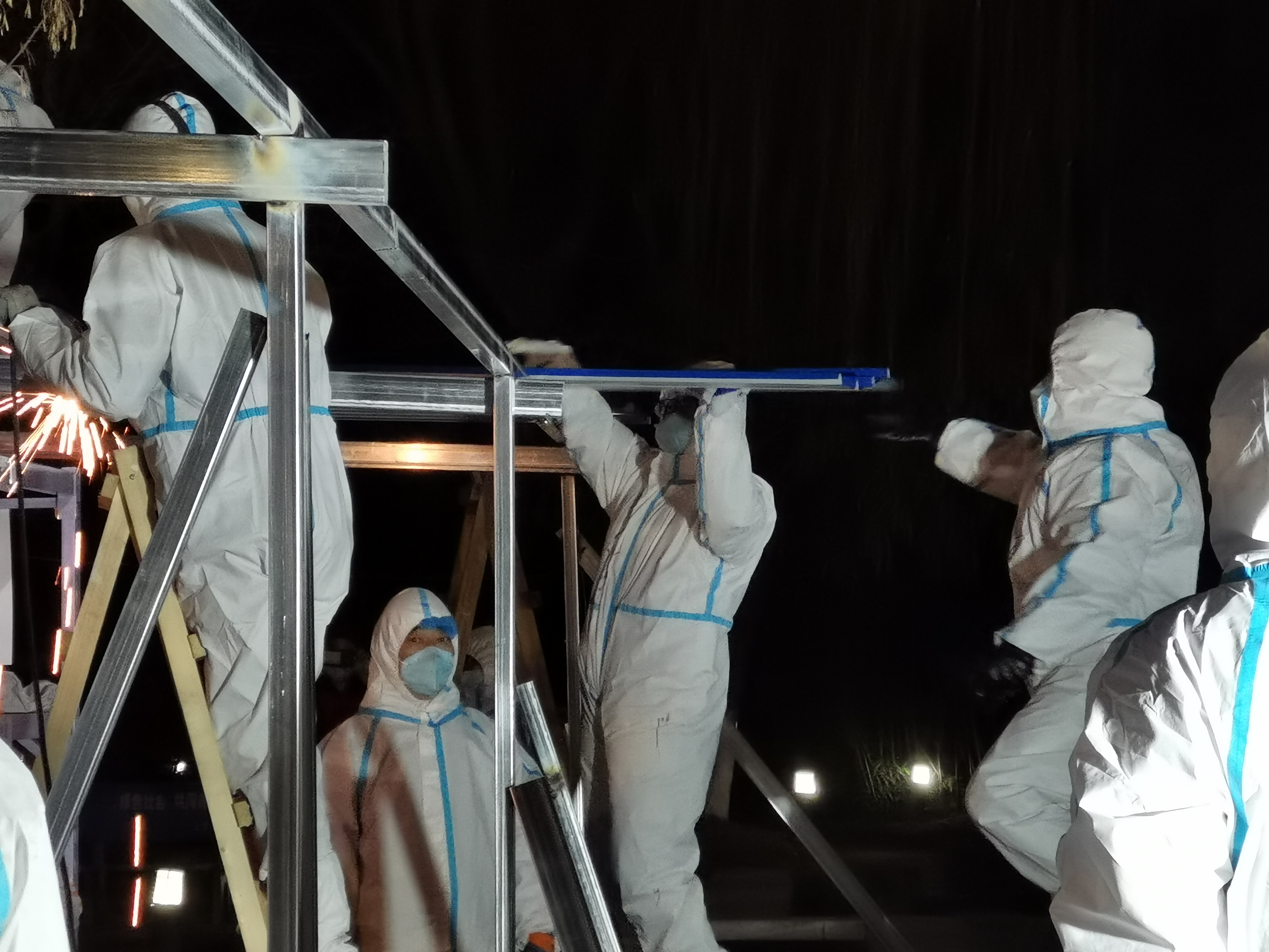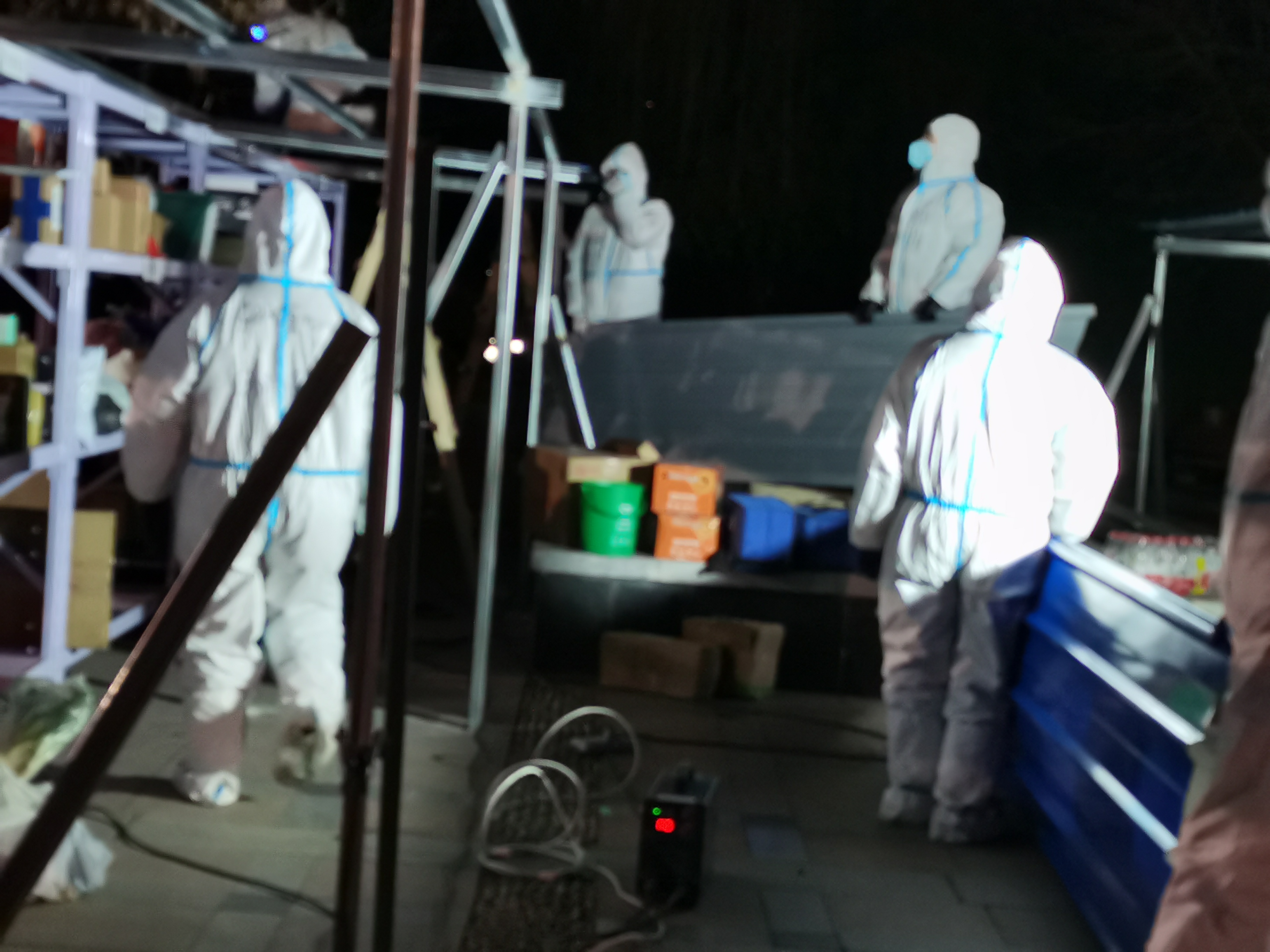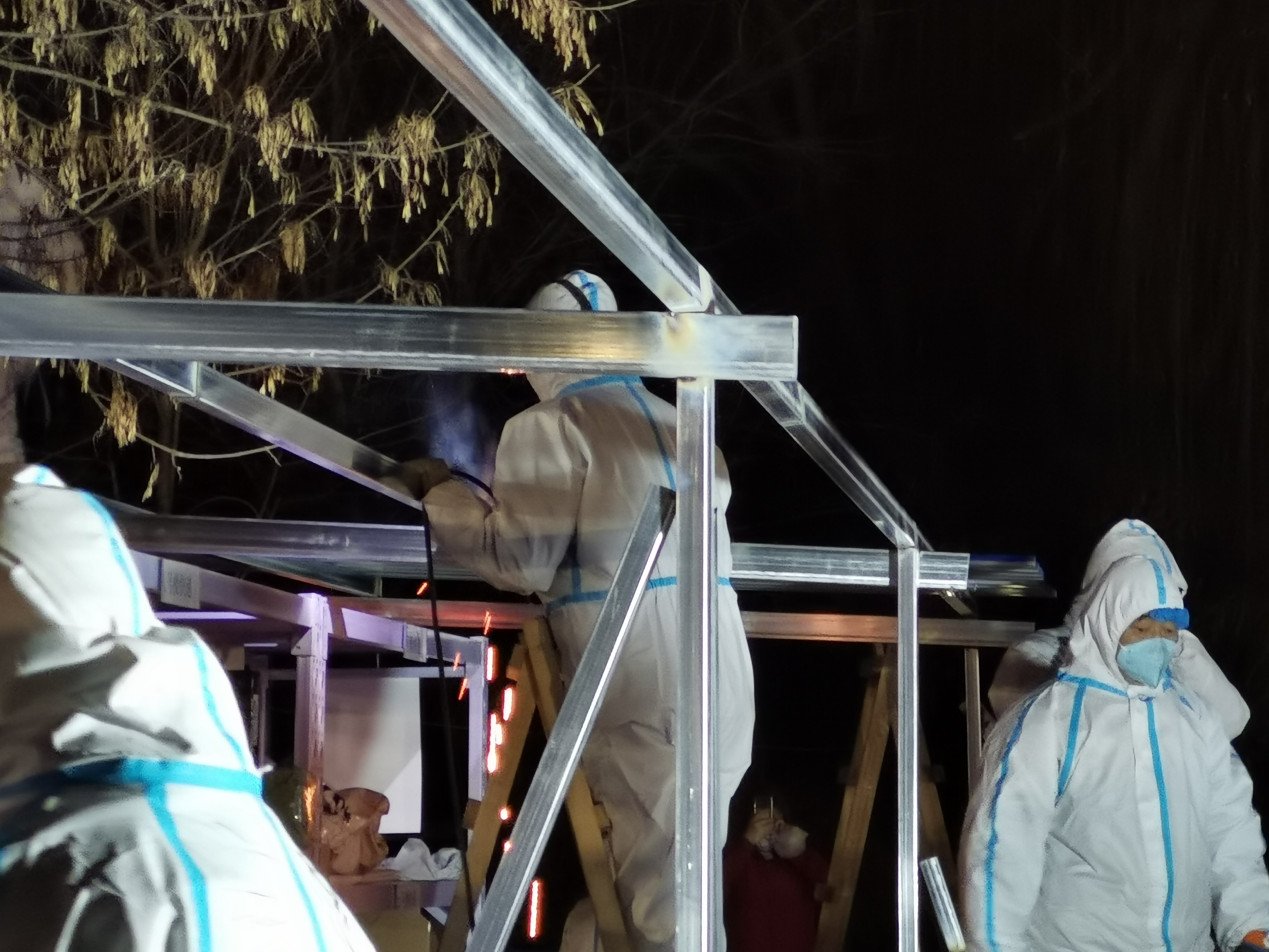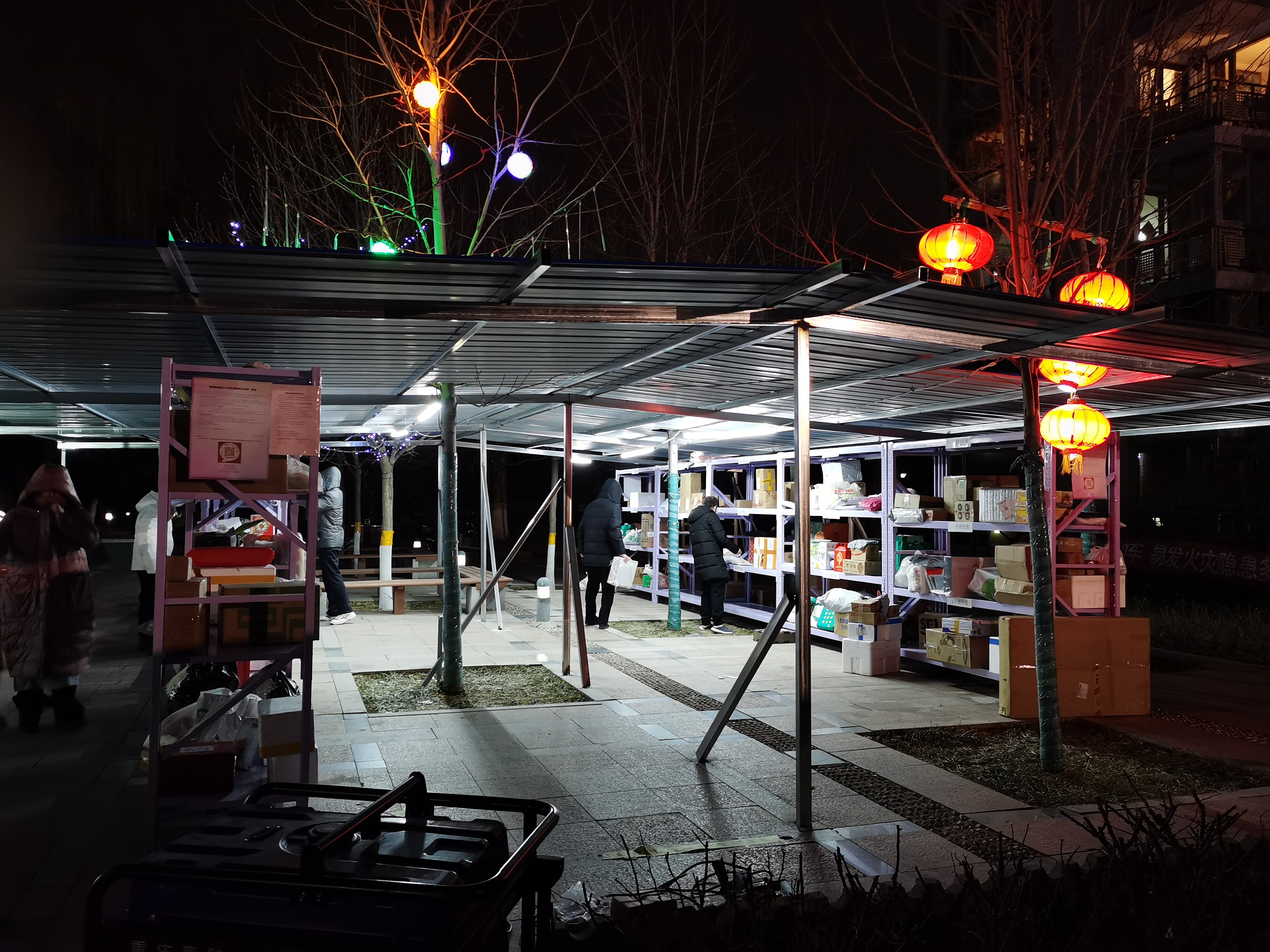 1月19日晚,气温已经降到零下,海淀区上地街道博雅西园小区物业的员工忙碌起来。为了保障居民物资供应,社区和物业给封控区内外的快递、外卖置物货架及运输通道搭建棚子,确保居民快递、外卖存放不受降雪影响。