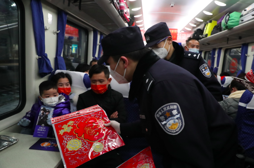 针对临时旅客列车运行时间长、停靠站点多的特点,乘警支队专门抽调警力进行值乘,并积极配合列车工作人员做好疫情防控工作,全力护送广大旅客安全到达目的地。