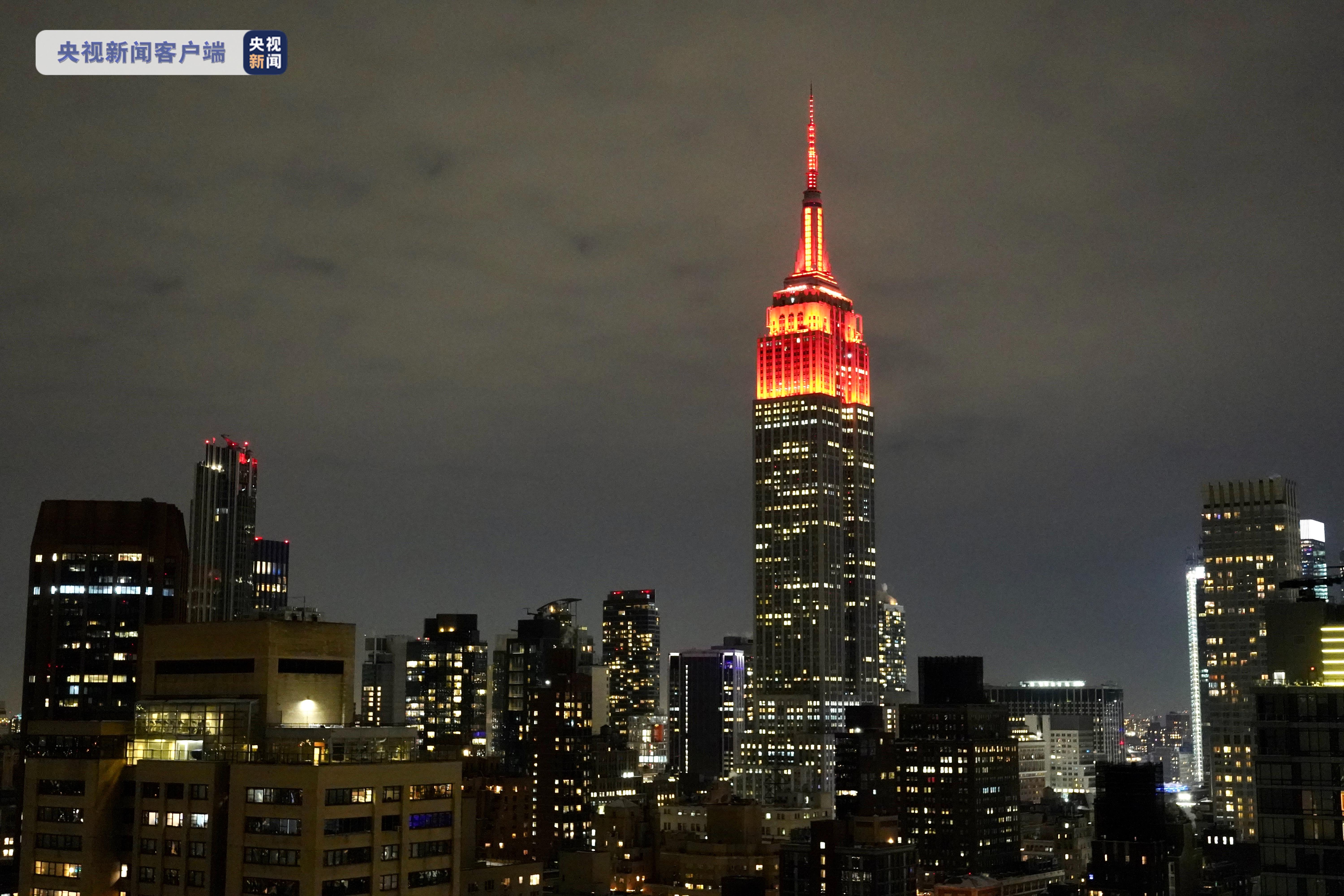 随着农历虎年的临近,美国纽约市多个地标建筑通过不同方式迎接中国农历新年的到来。