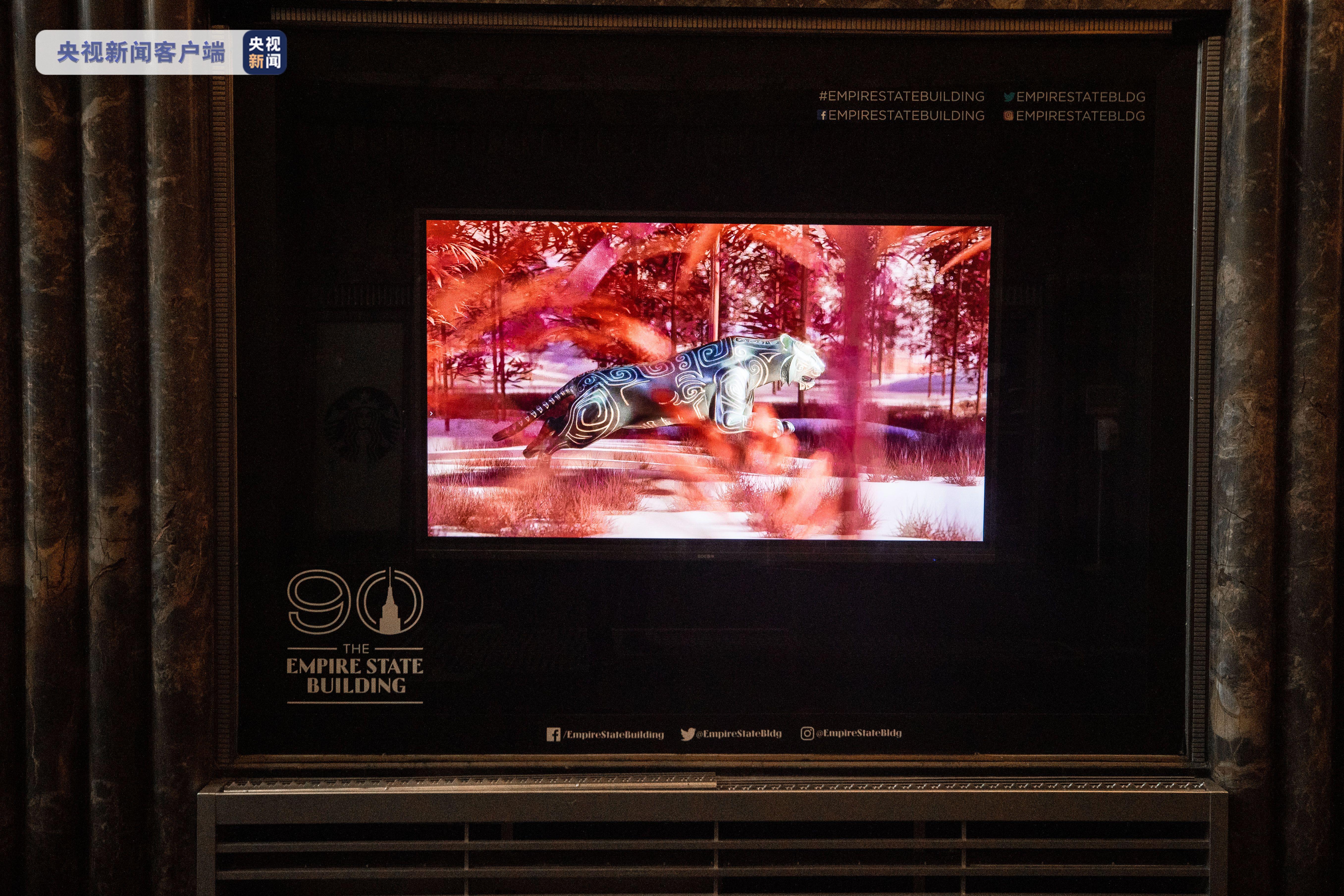 从1月28日开始,纽约帝国大厦揭幕其第五大道大厅“欢乐春节”橱窗展。据了解,橱窗主题为“虎虎生风”,分为“虎啸生风”“四时和顺”“福佑安康”三个板块。橱窗采用了电子屏显示,展现多种形式充满动感的老虎形象,并展现中国古代对于虎的艺术创作,带来耳目一新的感觉。