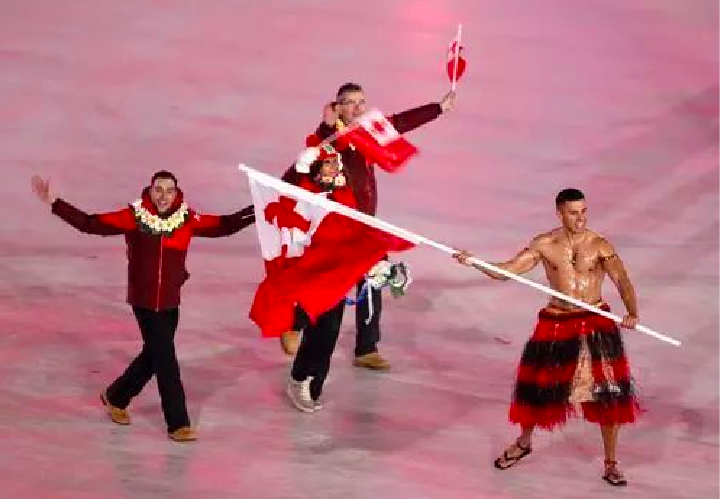 “汤加小哥”皮塔·塔乌法托法在2018年平昌冬奥会开幕式上