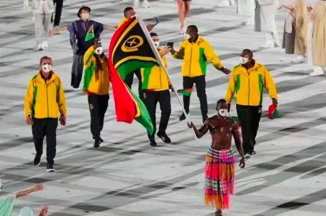 2021年夏天东京奥运会开幕式上瓦努阿图代表团旗手“抹油”出场