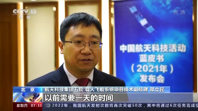 航天科技集团五院 载人飞船系统项目技术副经理 邵立民:我们这次神舟十三号要实行一次快速返回,以前需要一天的时间,这次我们只需要几圈的时间就可以返回,这样的话实际上也是提高航天员的舒适性。