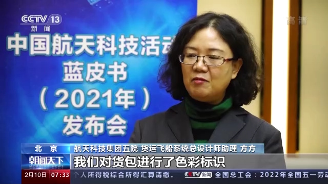 航天科技集团五院 货运飞船系统总设计师助理 方方:我们对货包进行了色彩标识,航天员根据色彩基本上就能知道这是航天员的食品,还是其他货物,还是空间站的货物等等能区分出来。然后第二个改进对于装货适配板增设了尼龙搭扣,不像以前是要拧螺钉的。