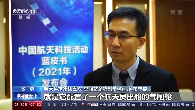 航天科技集团五院 空间站系统副总设计师 柏林厚:这也是为了提高我们整个空间站的可靠性,就相当于把核心舱的控制权交接给实验舱Ⅰ来进行控制。同时实验舱Ⅰ还有一个特点,就是它配置了一个航天员出舱的气闸舱,后续组装建造完成以后,航天员主要是通过实验舱Ⅰ的气闸舱来进行出舱,而我们目前核心舱的节点舱就可以作为气闸舱的一个备份。