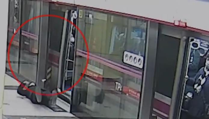 监控视频显示,当天早上7时30分,地铁5号线2033次列车运行至张自忠路站,一名男乘客下车后,摇摇晃晃,突然向后晕倒在站台上,不省人事。两名好心乘客见状立即下车救援,发现晕倒的乘客心脏骤停,立刻对其开展起心肺复苏术。
