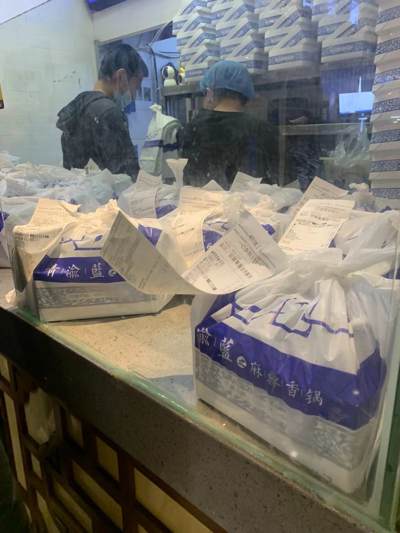 但记者也同时发现,青渝蓝麻辣香锅、醉面、牛肉板面等多家店铺,依然采用的是传统的塑料袋打包方式。服务员简单将塑料袋的提手打上两个结后,就将外卖递给等候在一旁的快递小哥。