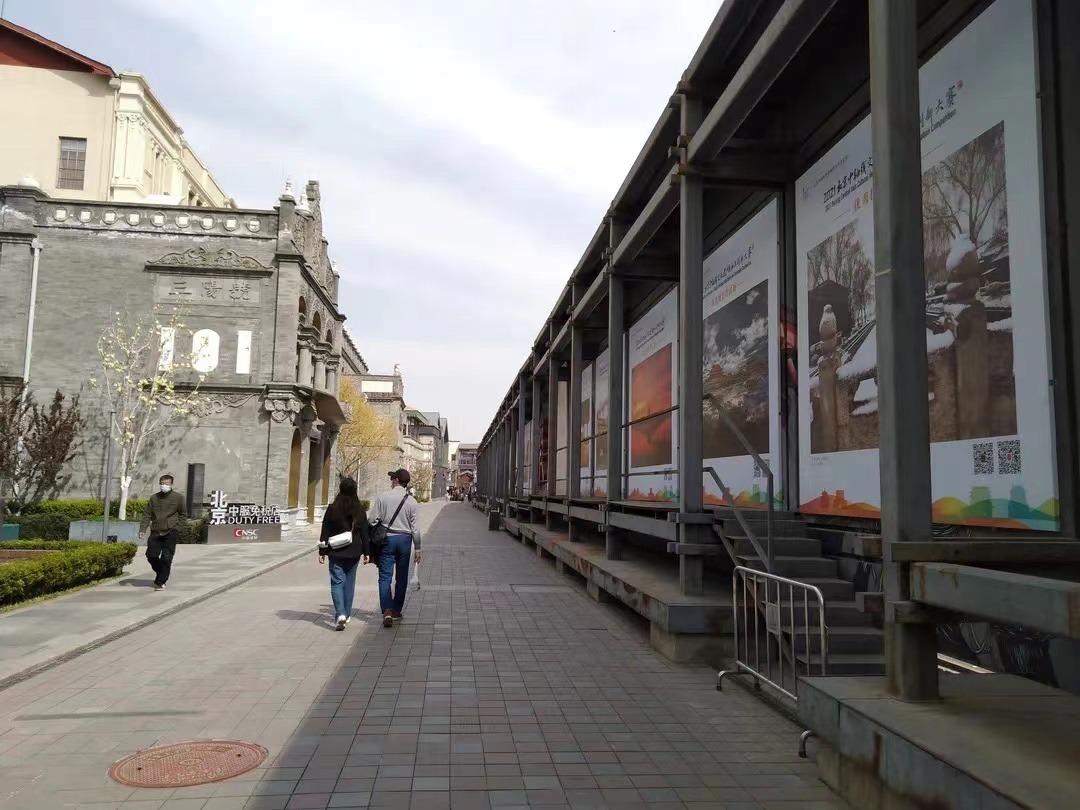 4月8日,“2021北京中轴线文化遗产传承与创新大赛优秀摄影作品展”在位于北京前门廊房头条的北京坊露天美术馆与公众见面,三十余幅摄影作品从不同角度展示出中轴线历史建筑的靓丽风采。
