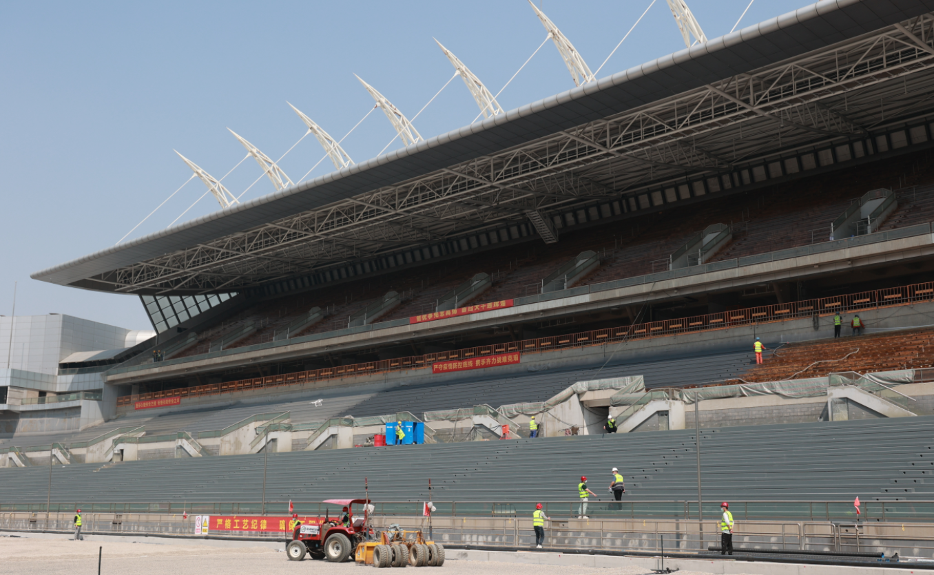 “滨海足球场选用的是冷季草,我们正在不断优化施工方案、工期倒排,全员坚守岗位,为5月中下旬开始正式种草奋力冲刺。”项目技术负责人说道。