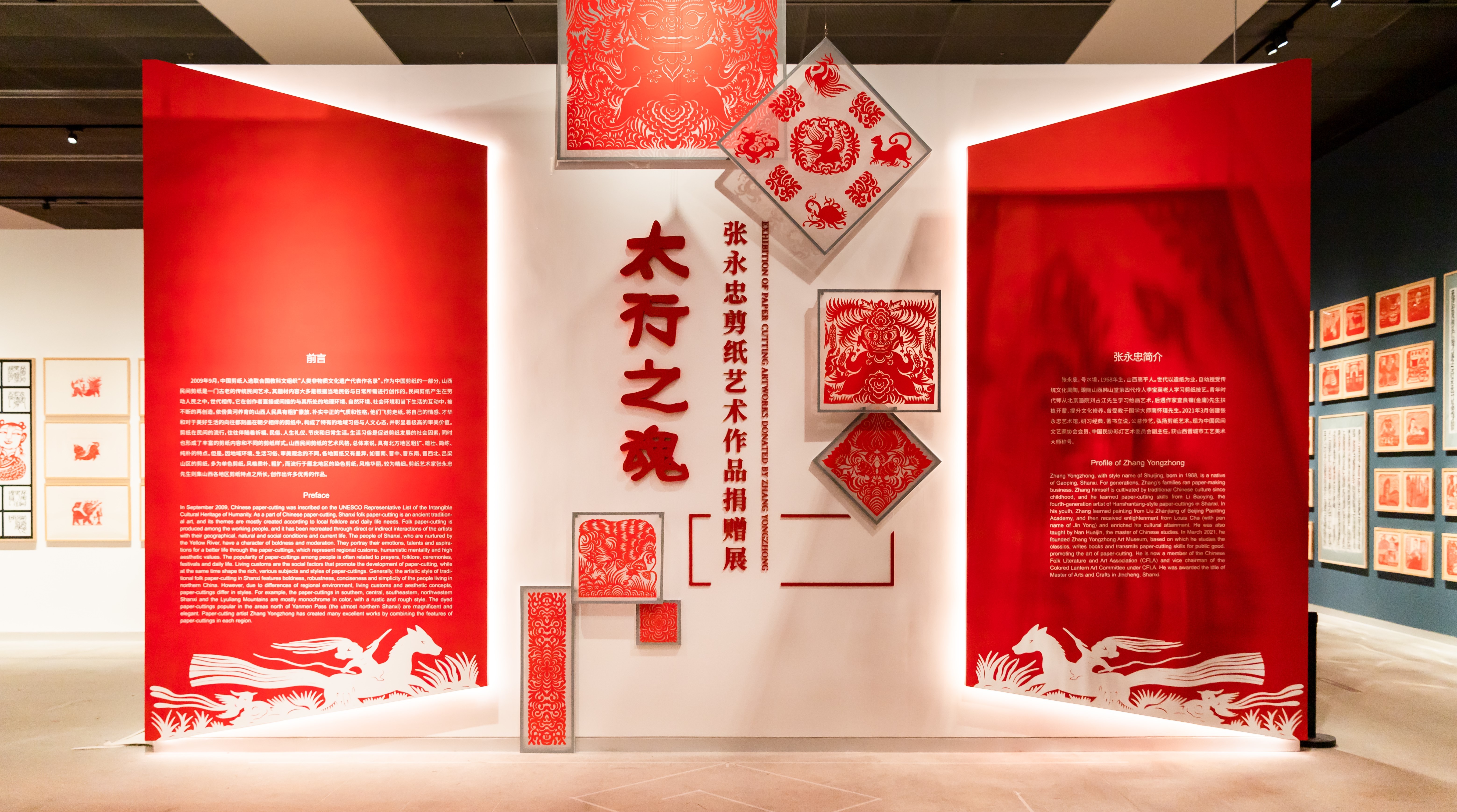 中国剪纸已入选联合国教科文组织“人类非物质文化遗产代表作名录”, 作为中国剪纸的一部分,山西民间剪纸历史悠久,具有极高审美价值。张永忠1968年生于山西高平,自幼受传统文化熏陶,跟随山西韩山堂第四代传人李宝英老人学习剪纸技艺。张永忠集山西各地区剪纸特点之所长,作品既还原了传统剪纸艺术的韵味,又具备强烈的现代创作意识。