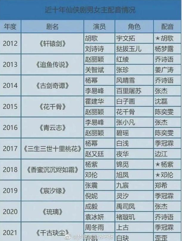本来,演员用自己的声音说台词是基本功,也应该是影视表演的常态,配音则是退而求其次的选择。但近十年来,配音却成了国产剧尤其是古偶剧的主流操作。一组2015年的数据显示:国产电视剧产量15320集,再加上各类引进剧,需要配音工作配合的剧集有80%以上。到2018年,知乎上有一个“什么时候你对中国电影、电视剧最失望”的问题下,一位用户回答是:“现在的国产剧太无聊了太单调了,一边是边江和季冠霖谈恋爱,一边是阿杰和季冠霖谈恋爱……说真的,现在小鲜肉的演技全靠配音大大撑着了。”