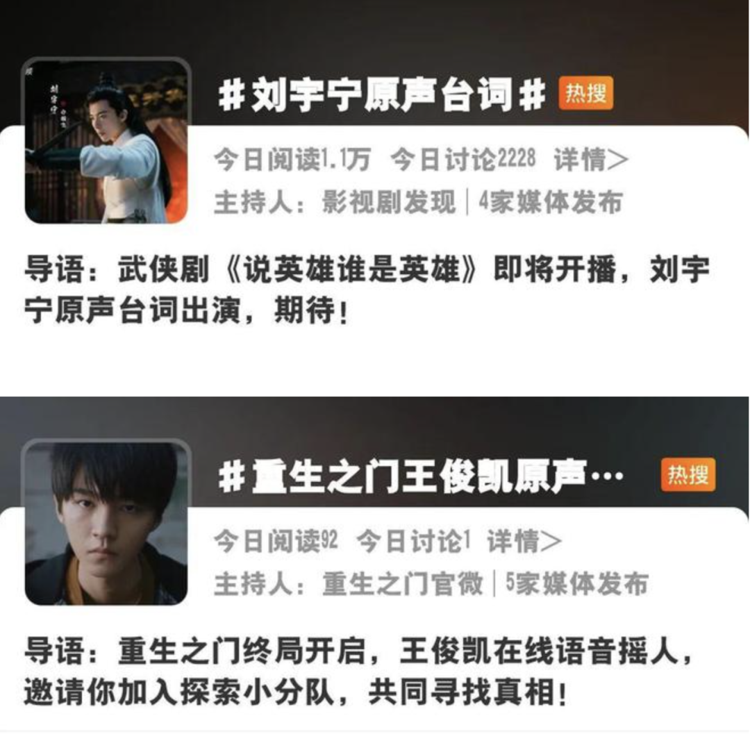 其实,好多粉丝压根没在电视剧里听过自家偶像的真人原声。还有的粉丝对偶像原声出演,内心其实是抗拒的,他们更希望由“配音大大”来个后期“精修”。