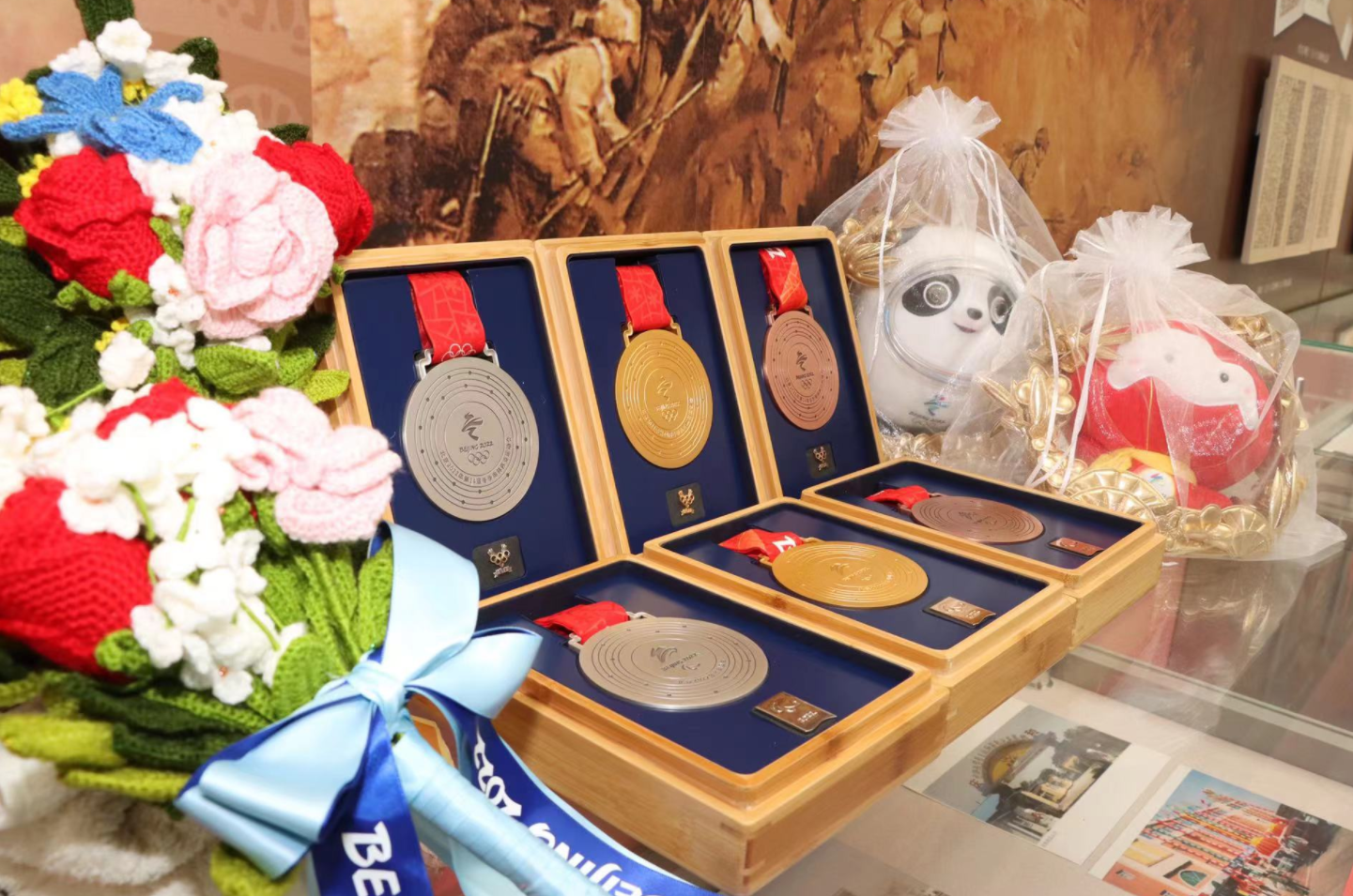 8月12日,在延庆区档案史志馆内,一枚枚熠熠生辉的冬奥会奖牌,绽放着耀眼光芒。奖牌色泽柔和典雅,祥云纹、冰雪纹和文字等下凹的雕刻部分光亮精致。