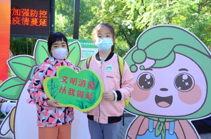 “文明游园从我做起”“共爱绿树鲜花,同沐蓝天碧水”……大游客和小游客都被活动吸引,他们纷纷贴上活动贴纸,举起宣传展板,参与到活动当中,共同营造安全、文明、健康、和谐、有序的游园氛围。