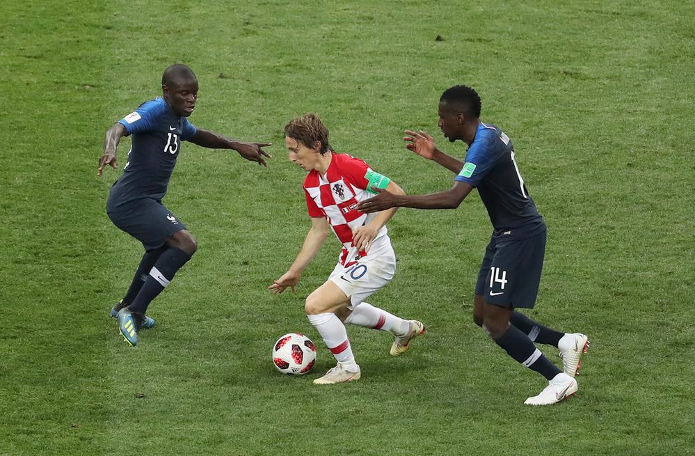 4年前的俄罗斯世界杯决赛,坎特防守克罗地亚队中场核心莫德里奇。图片来源:新华社