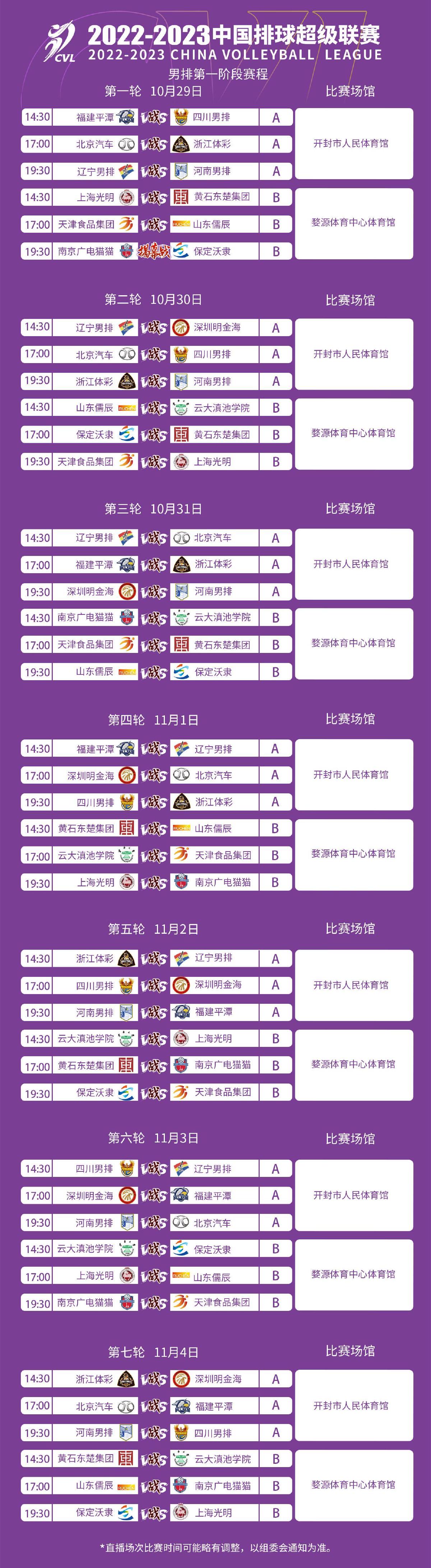 21日,中国排球协会公布了2022至2023赛季中国男子排球超级联赛第一阶段竞赛日程。根据赛程,北汽男排将在10月29日17时迎来新赛季首场比赛,对手是浙江体彩队。