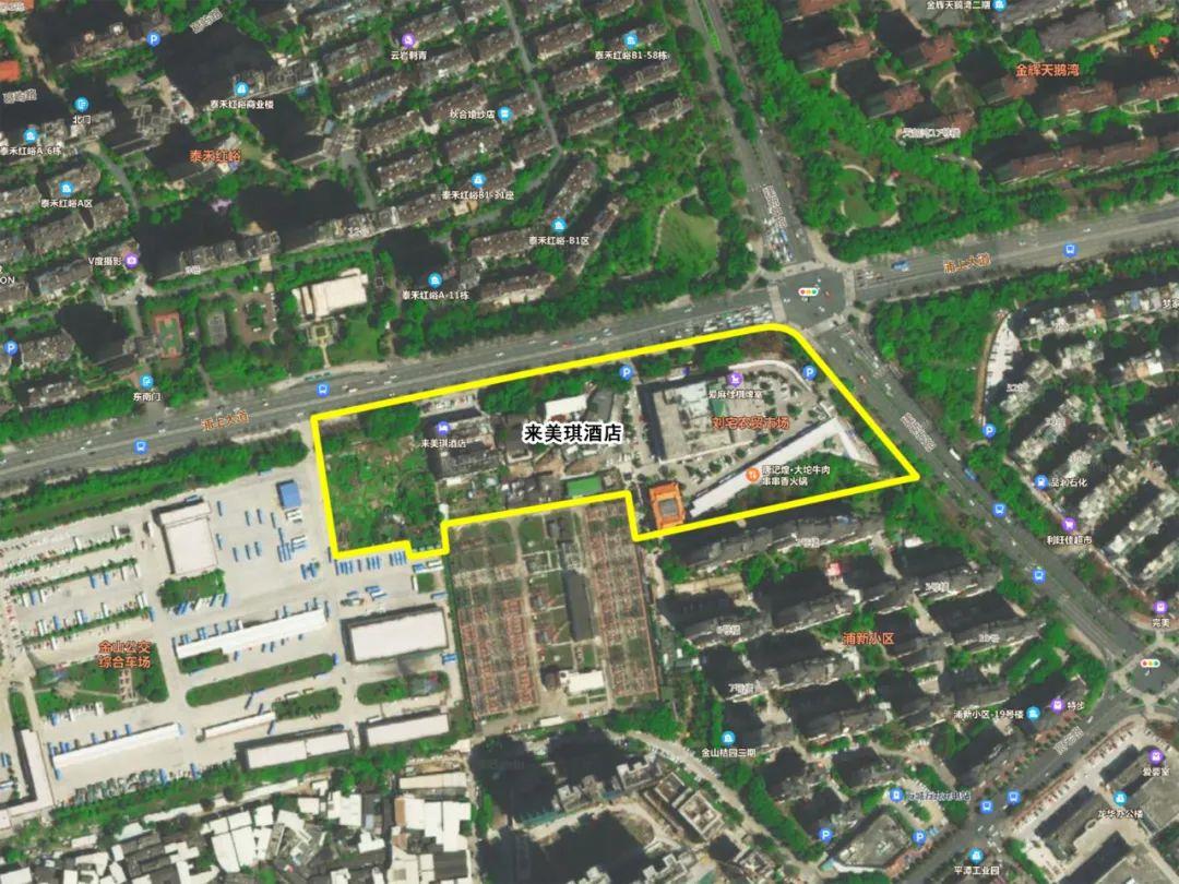 来美琪酒店(刘宅村店):东临建新南路,西临金山公交综合车场,南临建新变电站及浦新小区,北临浦上大道。