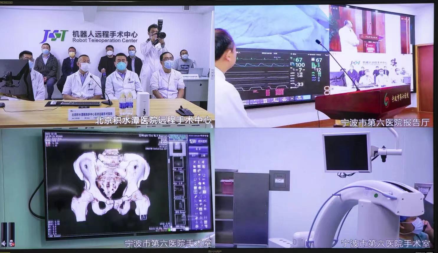 10月29日上午,北京积水潭医院机器人远程手术中心与宁波市第六医院远程连线,院长蒋协远、智能骨科病房主任王军强、创伤骨科主任医师韩巍、脊柱外科副主任何达等骨科专家,通过骨科机器人5G远程手术系统先后为2名一千多公里外的当地患者进行了手术。