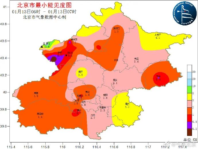 据@气象北京7时56分消息,目前本市大部分地区能见度在2公里~3公里,部分地区能见度不足1公里,出行注意交通安全,驾车减速慢行。