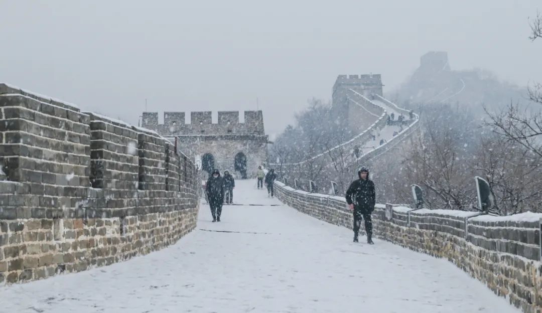 1月12日,八达岭长城迎来冬雪。