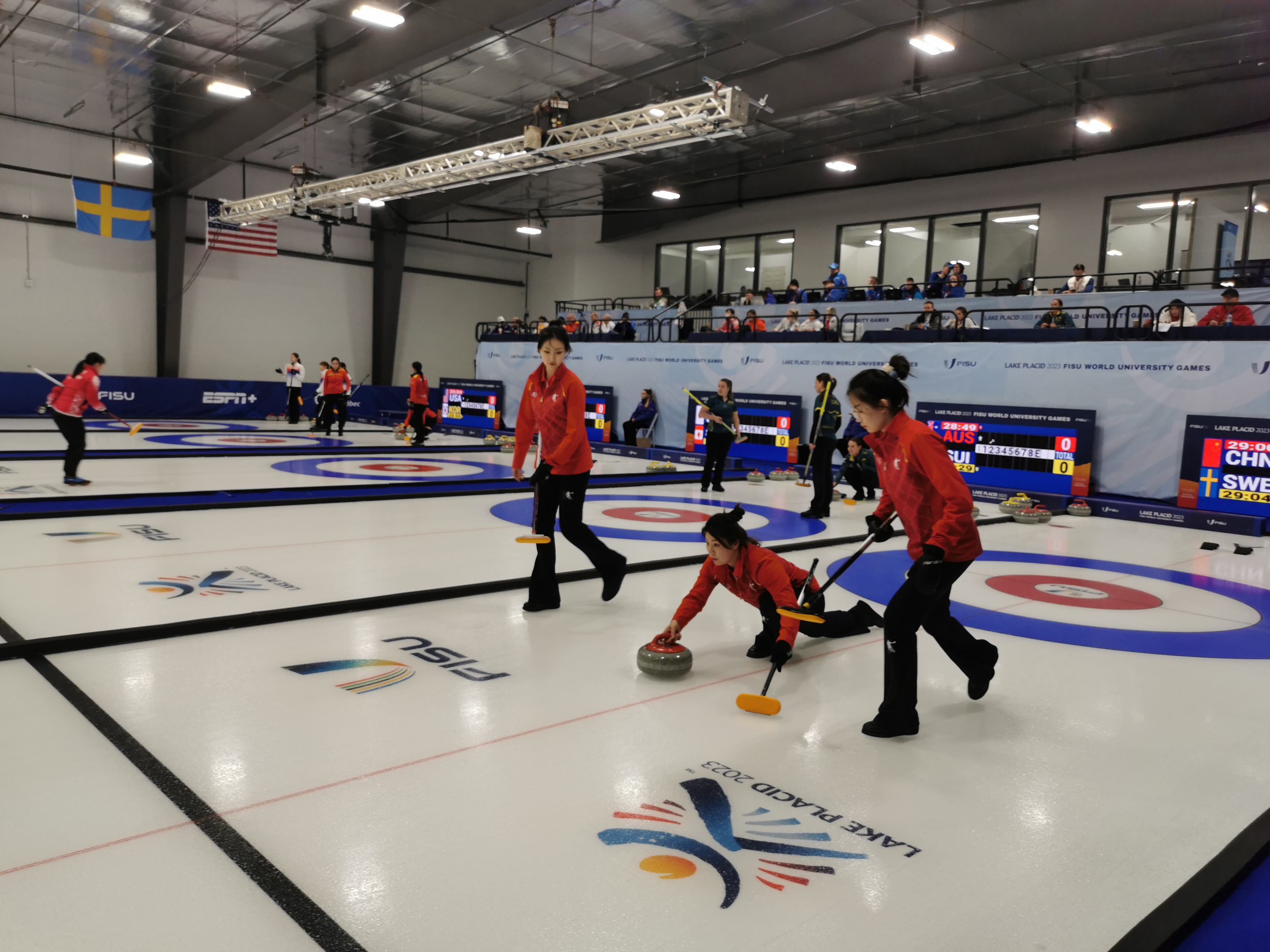 当天晚间,中国队对阵瑞典队。比赛前半程,两队比分紧咬。后半程,中国姑娘们打出精彩表现,最终以6比4赢下比赛。加上在首轮比赛中9比5击败西班牙队,中国女子大学生冰壶队迎来三连胜。
