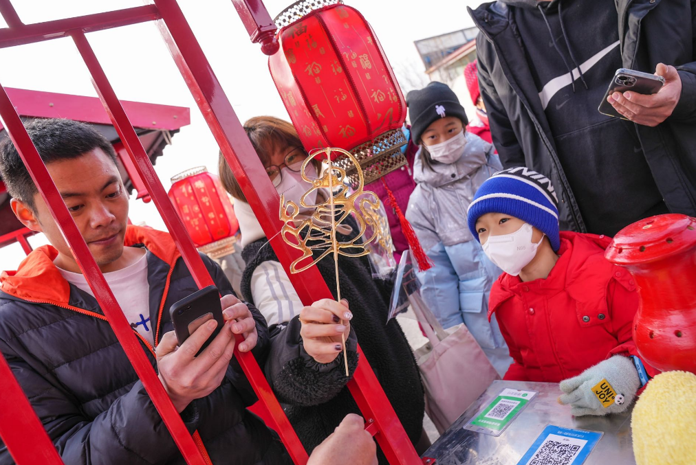“我是特地从城里带着孩子过来的,太有新鲜感了,三年没这么热闹了,既能看舞龙表演,还能逛咱们农村大集,好吃的好玩的实在太多了!”市民李女士说道。正逢正月十三,北务镇大集开市了。在民间艺术摊位非遗传承者制作毛猴、押花葫芦、京剧脸谱、风车,民俗传统手工摇元宵、糖画、糖葫芦制作令人大饱眼福,猜灯谜、套圈游戏吸引众多父母和孩子们驻足游玩。接地气的北务大集,蒸馒头,蒸发糕,小磨香油,各种新鲜的蔬菜瓜果,品种多样的农副产品,引得市民争相购买。