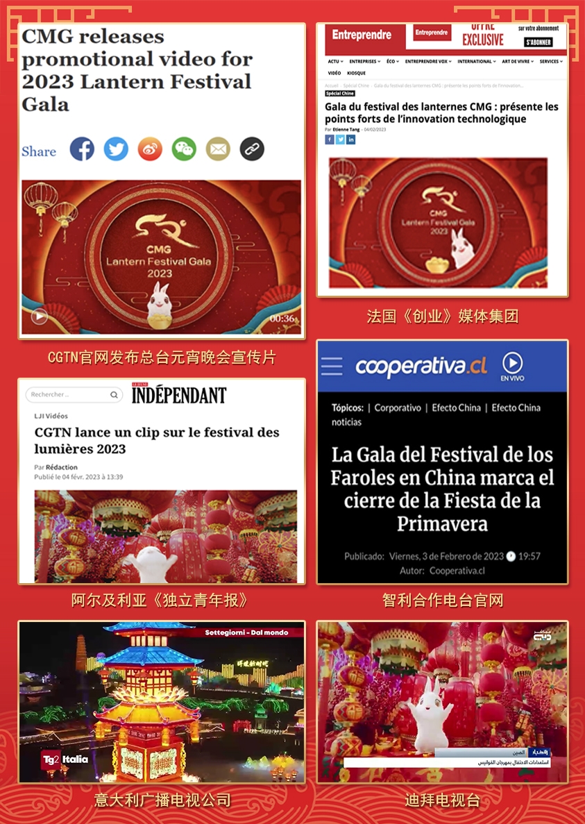 海外传播方面,总台通过68种语言面向全球受众转播或报道元宵晚会,并通过全球传播矩阵持续将中国红点亮“海外千屏”。CGTN(中国国际电视台)全平台发布元宵晚会相关报道,获全球阅读量超1.32亿;央视网海外社交平台直播播放量超1070万次,比去年大幅提升206%,让全球受众一同感受中国元宵佳节的喜庆氛围和万家团圆的新春祝福。