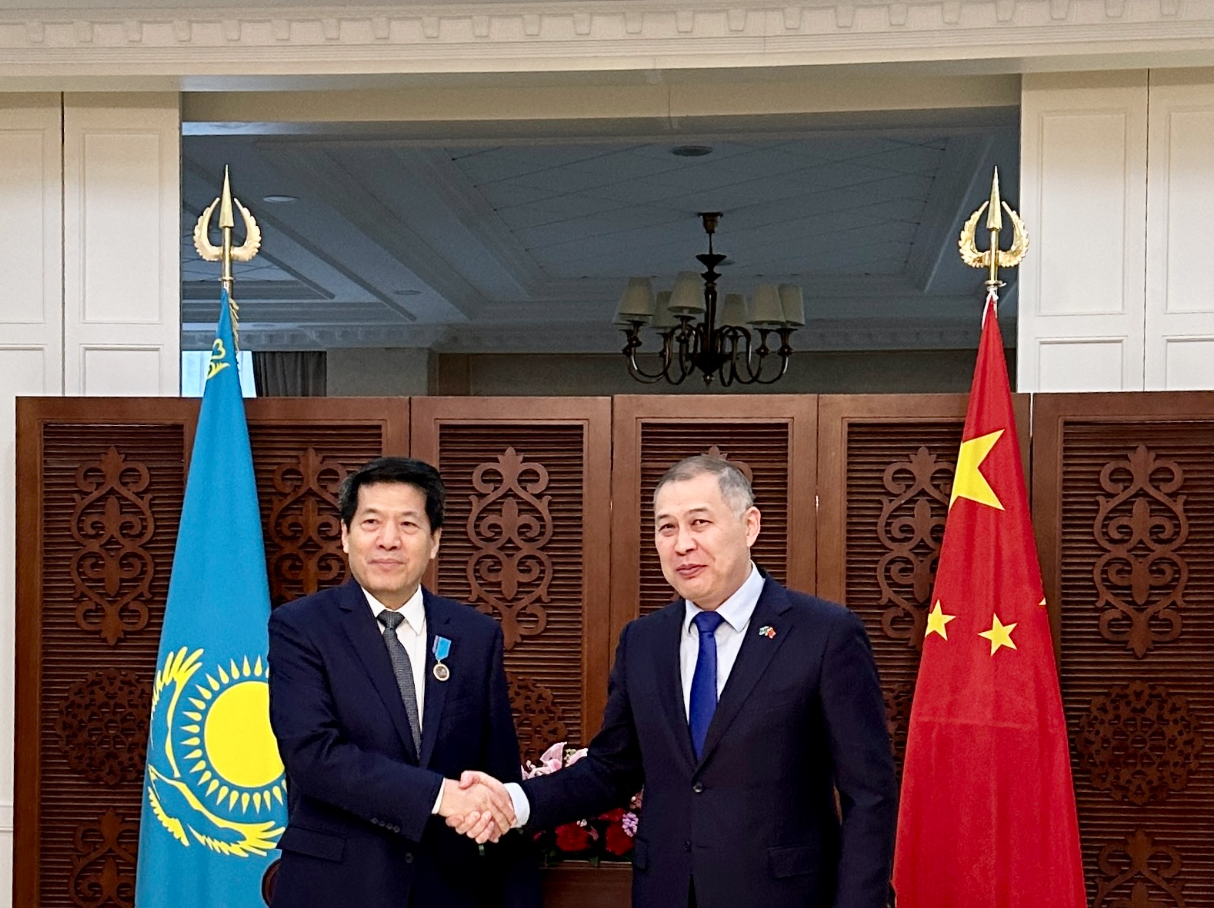 哈萨克斯坦驻华使馆2月9日举行“亚洲相互协作与信任措施会议30周年”纪念奖章颁发仪式。