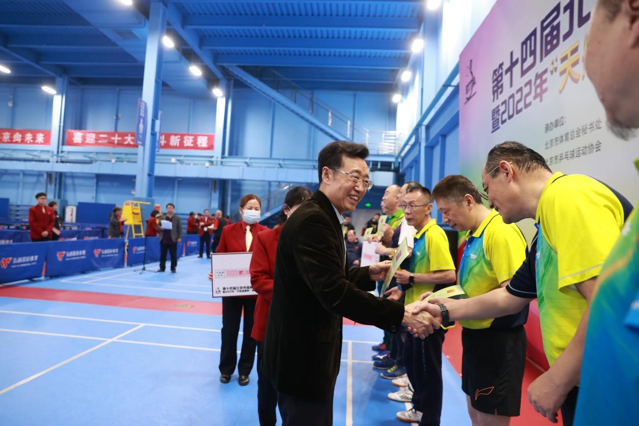 经过两天的激烈角逐,团体和单打各组别优胜者脱颖而出。颁奖仪式上,原中国人民海军装备部政委金克少将、北京市乒乓球运动协会会长孙学才等领导为获奖代表队和运动员颁发了奖杯、奖牌和证书。