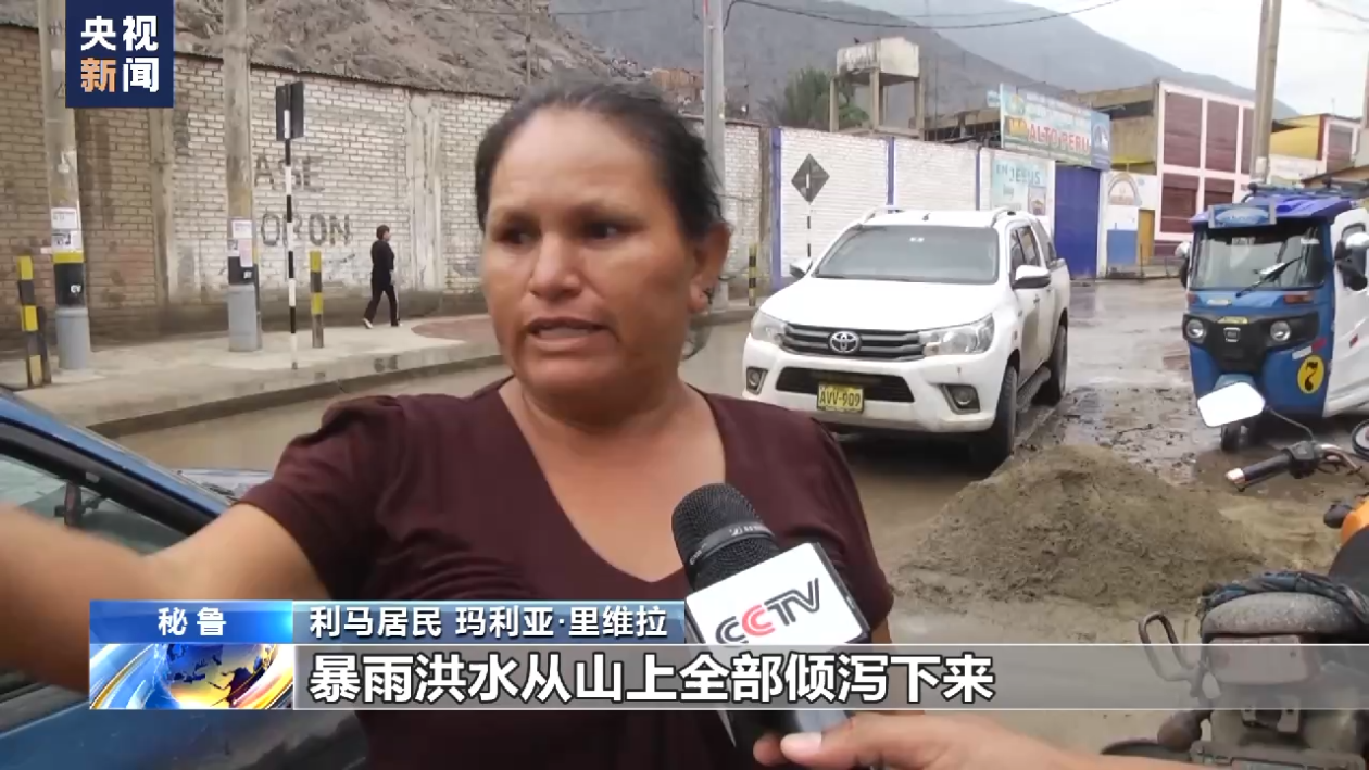 利马居民玛利亚·里维拉:暴雨洪水从山上全部倾泻下来,现在我所住的地区也发生了山洪,我们需要民防部门的帮助。