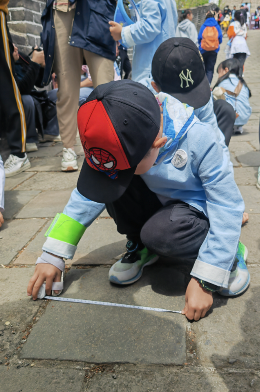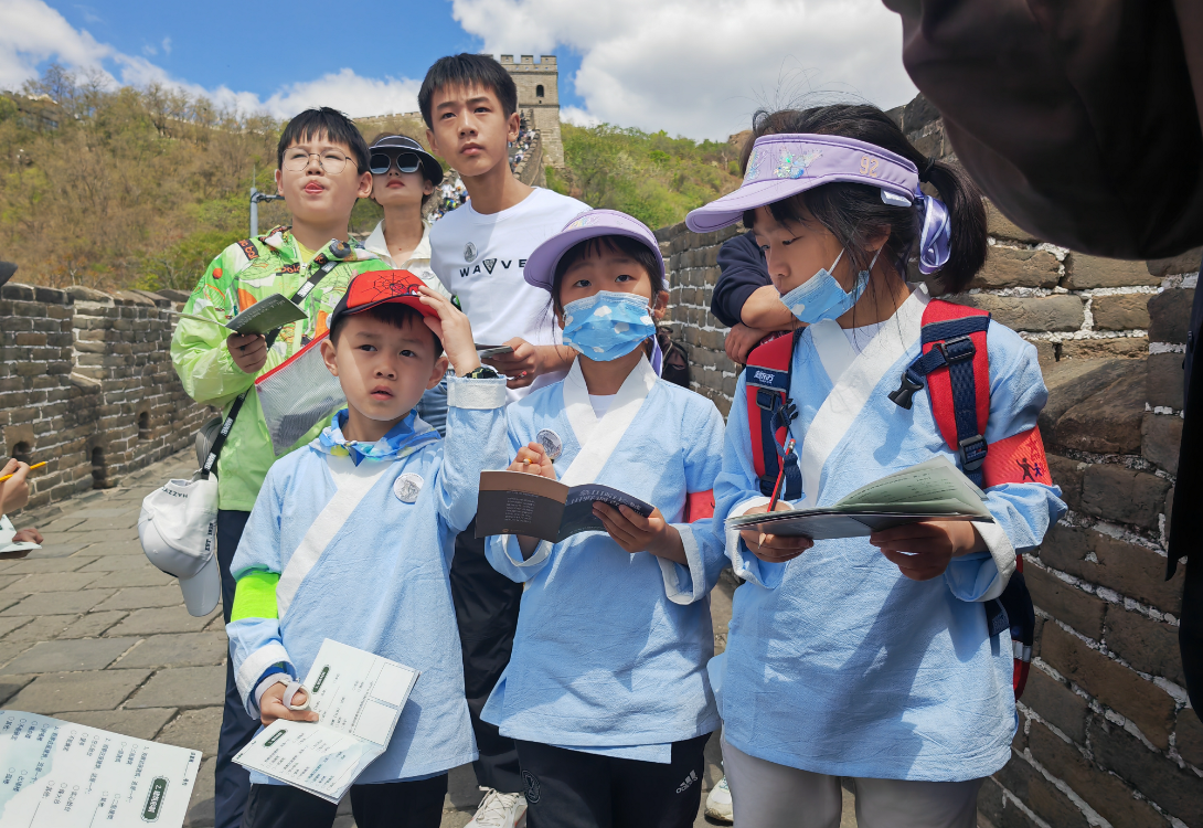 研学活动上,孩子们背着书包、拿着各种小工具,在专业老师的带领下踏上慕田峪关,开展长城田野调查,参与长城专题课《坚强的长城、倔强的拱》并体验烽火传信等趣味游戏,完成了一场探索知识与实践的长城之旅。