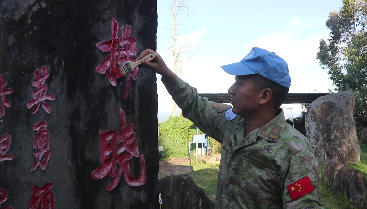 此外,维和分队还充分发挥自身红色资源,开展营区内文化石“描红说红”活动,引导官兵汲取奋进力量,激发维和热情。