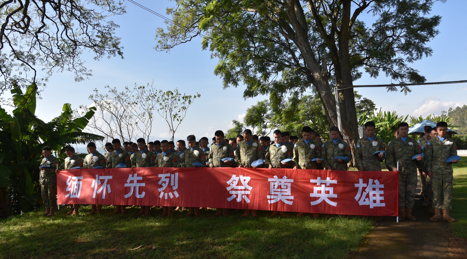 当天清晨,中国维和分队全体官兵胸戴白色小花,在基伍湖畔的付清礼烈士纪念碑前肃穆而立,隆重举行英烈祭奠仪式,深切缅怀为维和事业献出宝贵生命的付清礼烈士,追思他投身维和事业、扎根维和岗位的伟大献身精神。2003年5月3日,中国首批赴刚果(金)维和工兵分队战士付清礼在保养装备时因突发疾病,经抢救无效不幸牺牲,用自己年仅26岁的生命践行了“忠实履行使命,维护世界和平”的铮铮誓言。为纪念这位国际维和战士,维和官兵在“中国半岛”为付清礼烈士立碑。从那时起,这里便成为激励一批批维和战士投身维和事业、扎根维和岗位的红色教育基地。