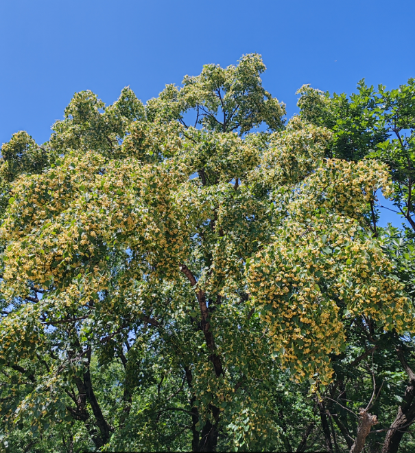 紫椴是我国原生树种,国家二级重点保护野生植物,主要分布在东北、山东、河北、山西等省区,是锦葵科椴属落叶乔木。它不仅是非常美丽的景观树木,而且能够固碳释氧、降温增湿,具有较强的杀菌和重金属吸收能力,也是名贵的蜜源植物。根据《北京重点保护野生植物》等资料记载,北京市的紫椴主要分布在延庆和密云的自然保护区内。其中延庆区主要集中在松山国家级自然保护区、延庆区玉渡山自然保护区,记录约为十多棵,但在九眼楼及其周边,并无记录。因此,此次发现疑似紫椴虽然欣喜,但工作人员们心里也打起了鼓,“当时我们还难以确定。原因是紫椴和蒙椴很像,区别主要得看花儿,当时刚6月初,不是紫椴的花期,所以无法精准判别。”延庆区自然保护地管理处资源管理科负责人史常栋说。