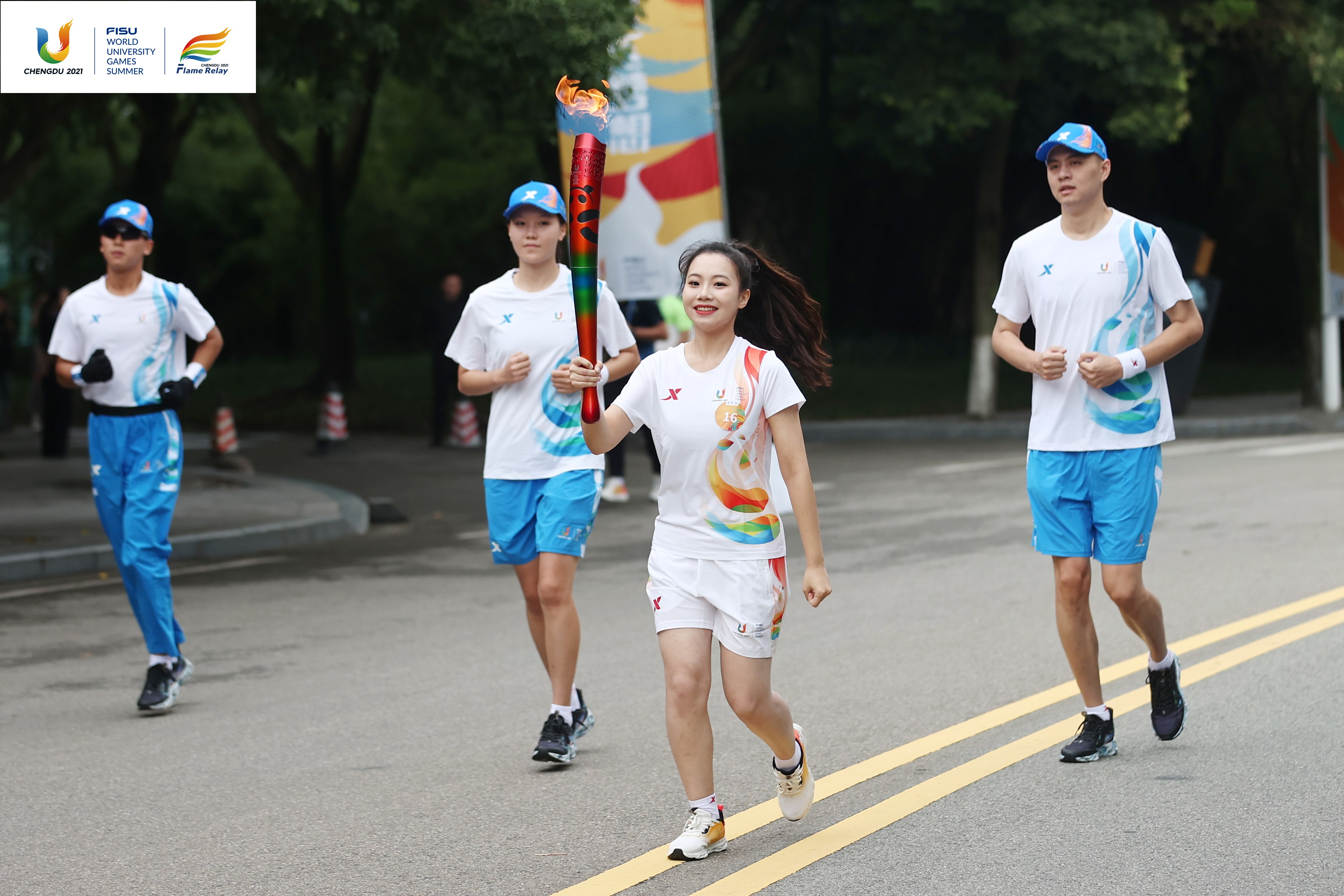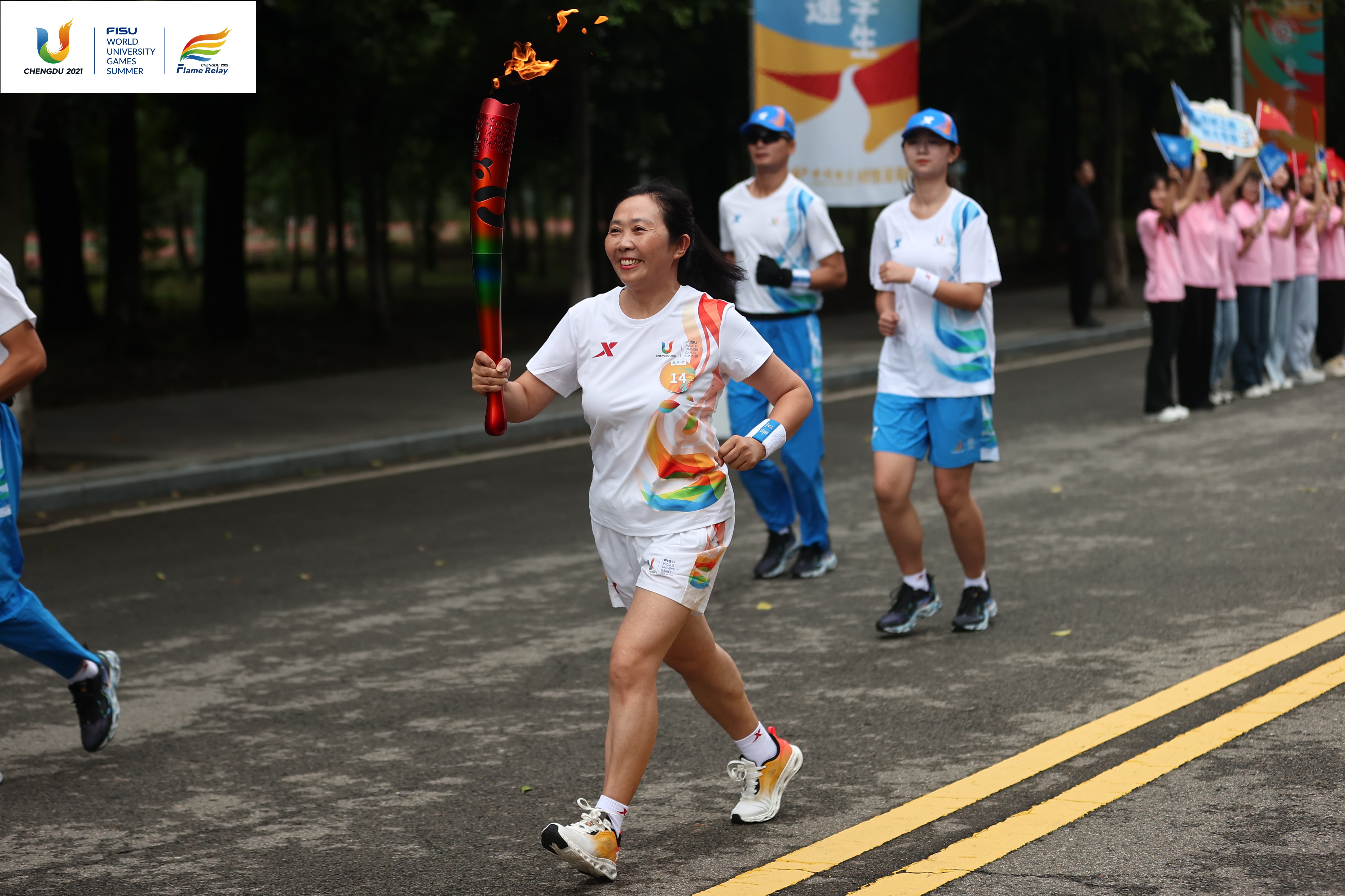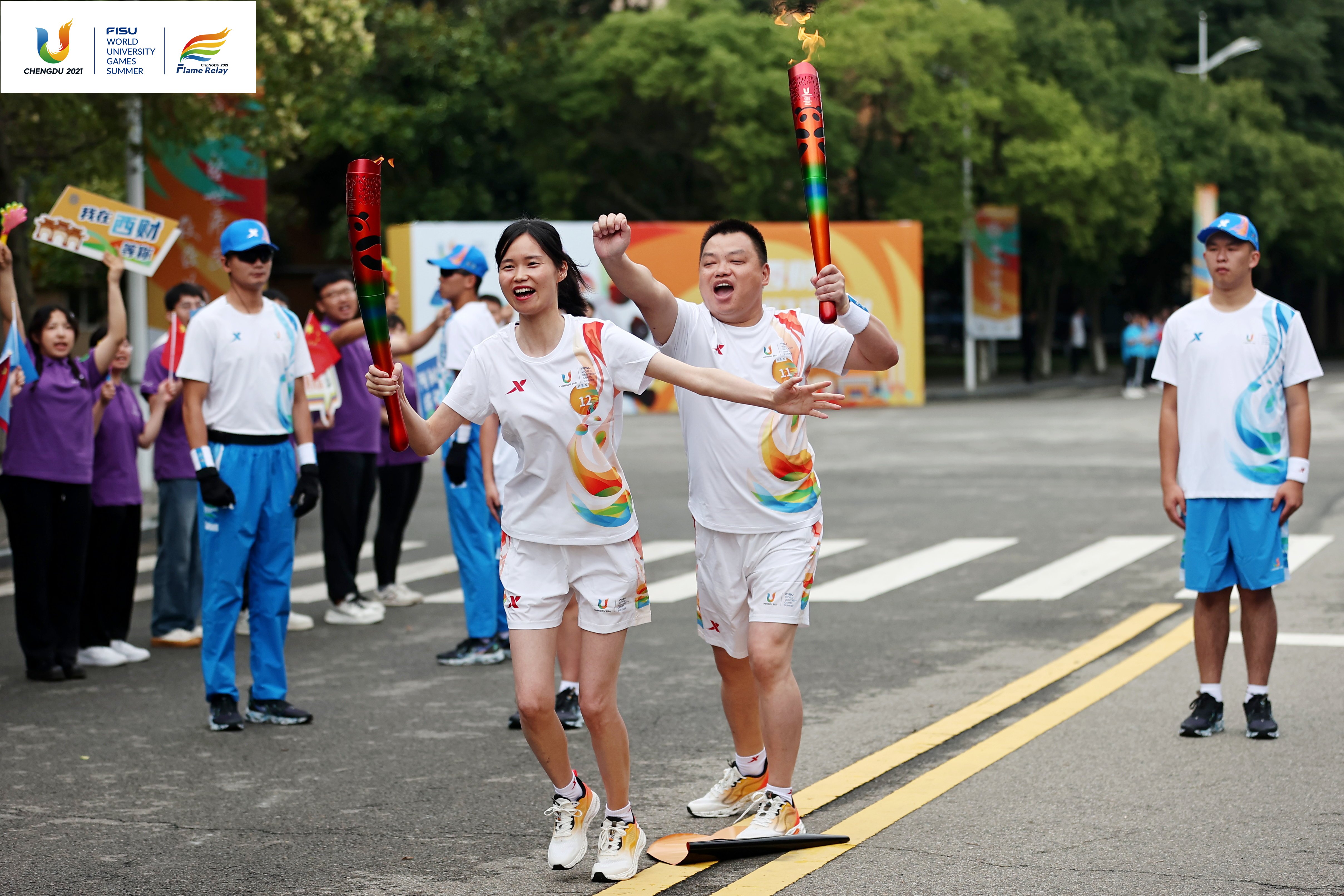 7月14日,成都第31届世界大学生夏季运动会火炬传递成都站在西南财经大学(柳林校区)、四川交通职业技术学院、成都中医药大学(温江校区)、四川农业大学(温江校区)和成都工业学院举行。共有152棒火炬手参与传递。