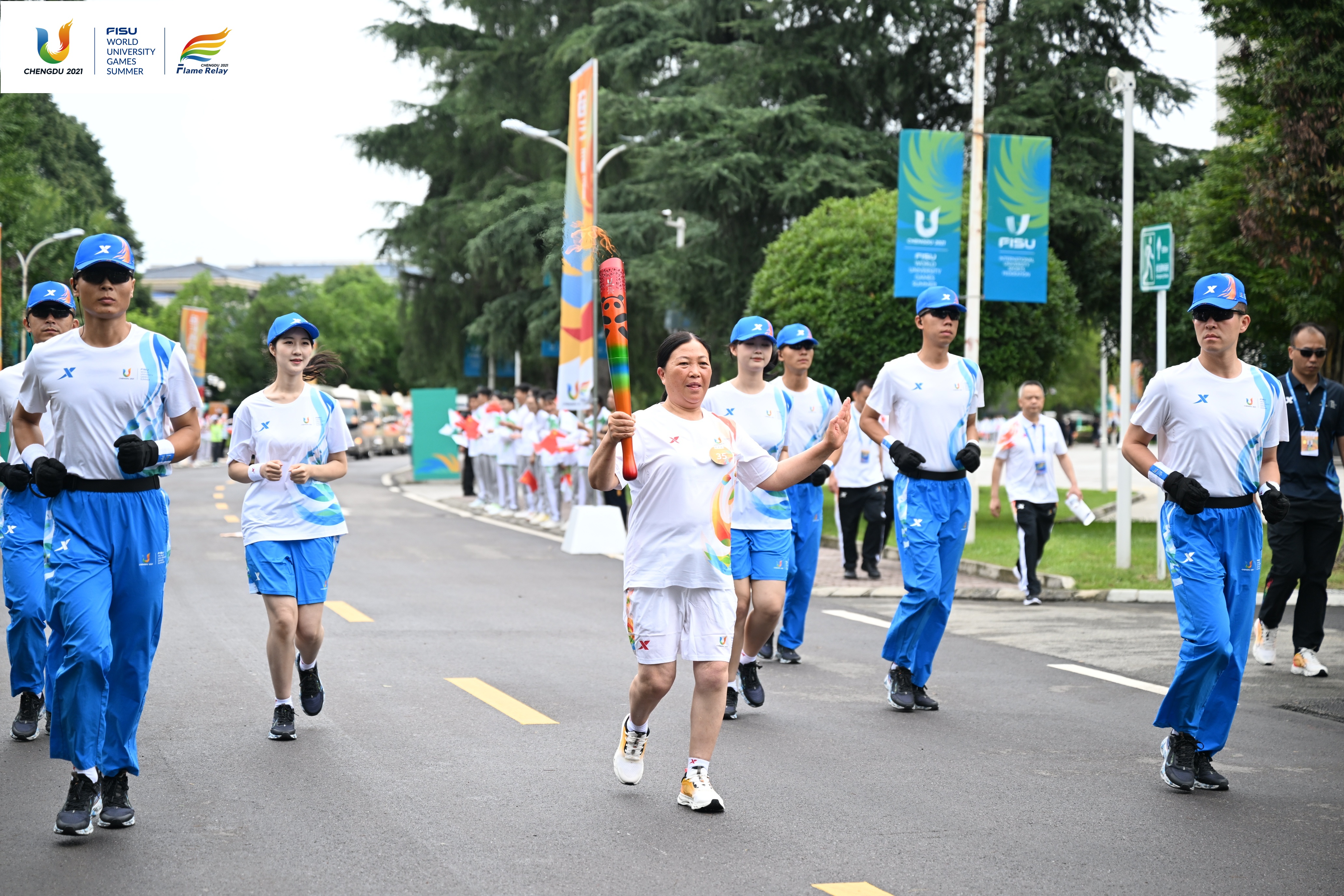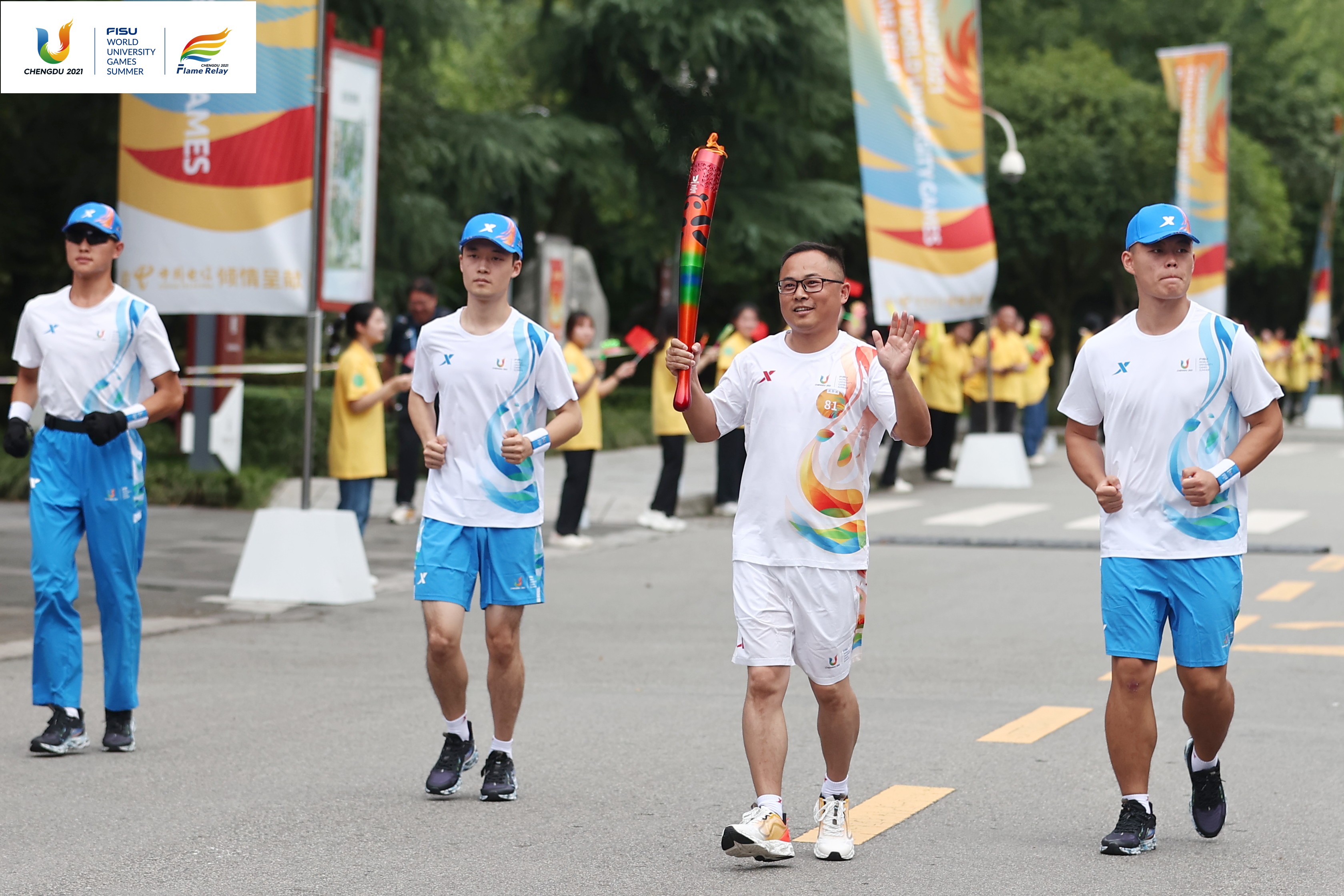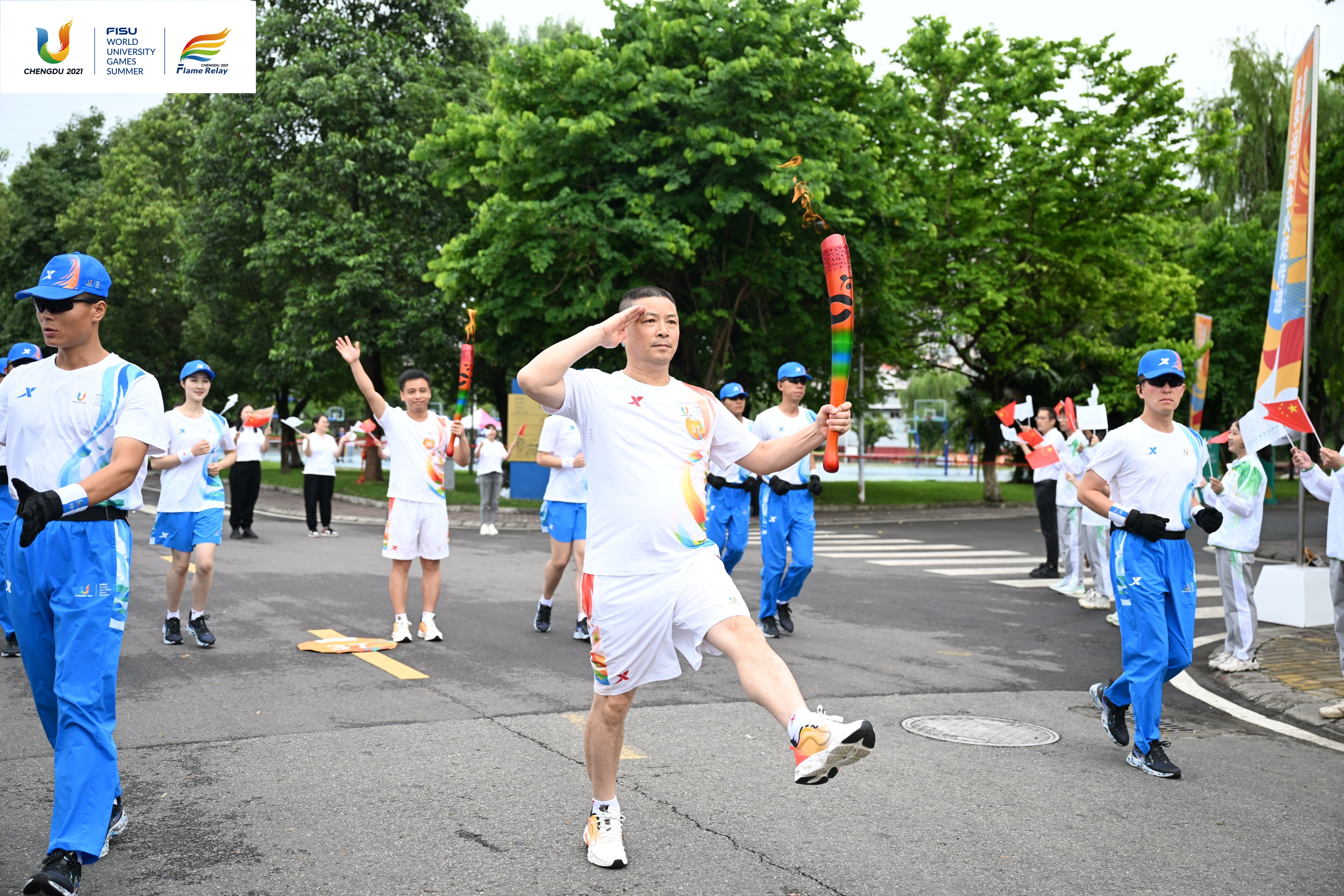 7月14日,成都第31届世界大学生夏季运动会火炬传递成都站在西南财经大学(柳林校区)、四川交通职业技术学院、成都中医药大学(温江校区)、四川农业大学(温江校区)和成都工业学院举行。共有152棒火炬手参与传递。