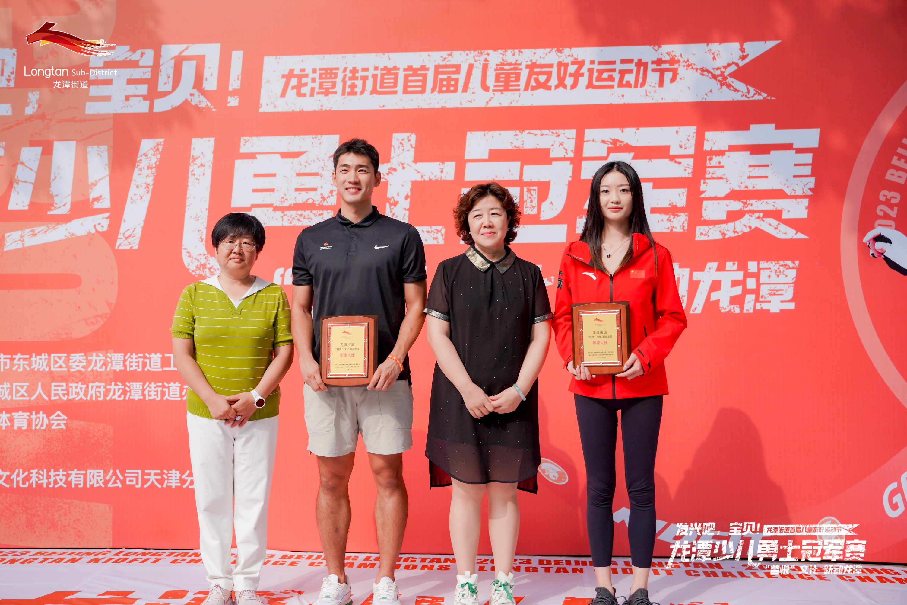 同时,艺术体操世界冠军丁子怡、中国沙滩足球国家队成员刘浩然被授予龙潭街道“‘巷悦’文化 跃动龙潭”形象大使称号,鼓励他们在更多领域传递好龙潭声音、讲述好龙潭故事。在形象大使带领下,现场所有领导、嘉宾、家长和小朋友共同跳起快乐健身操,这也标志着龙潭街道首届儿童友好运动节正式开启。