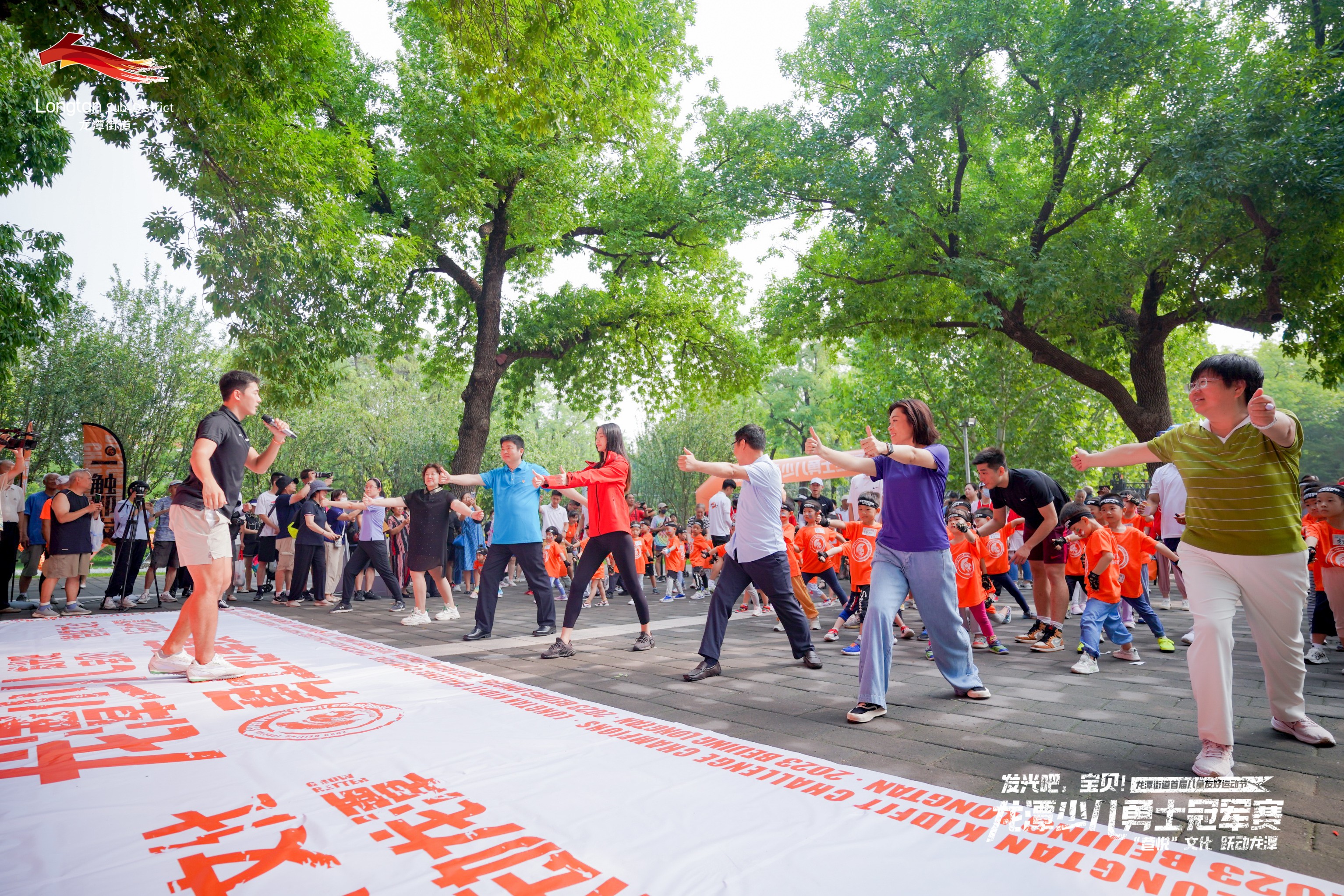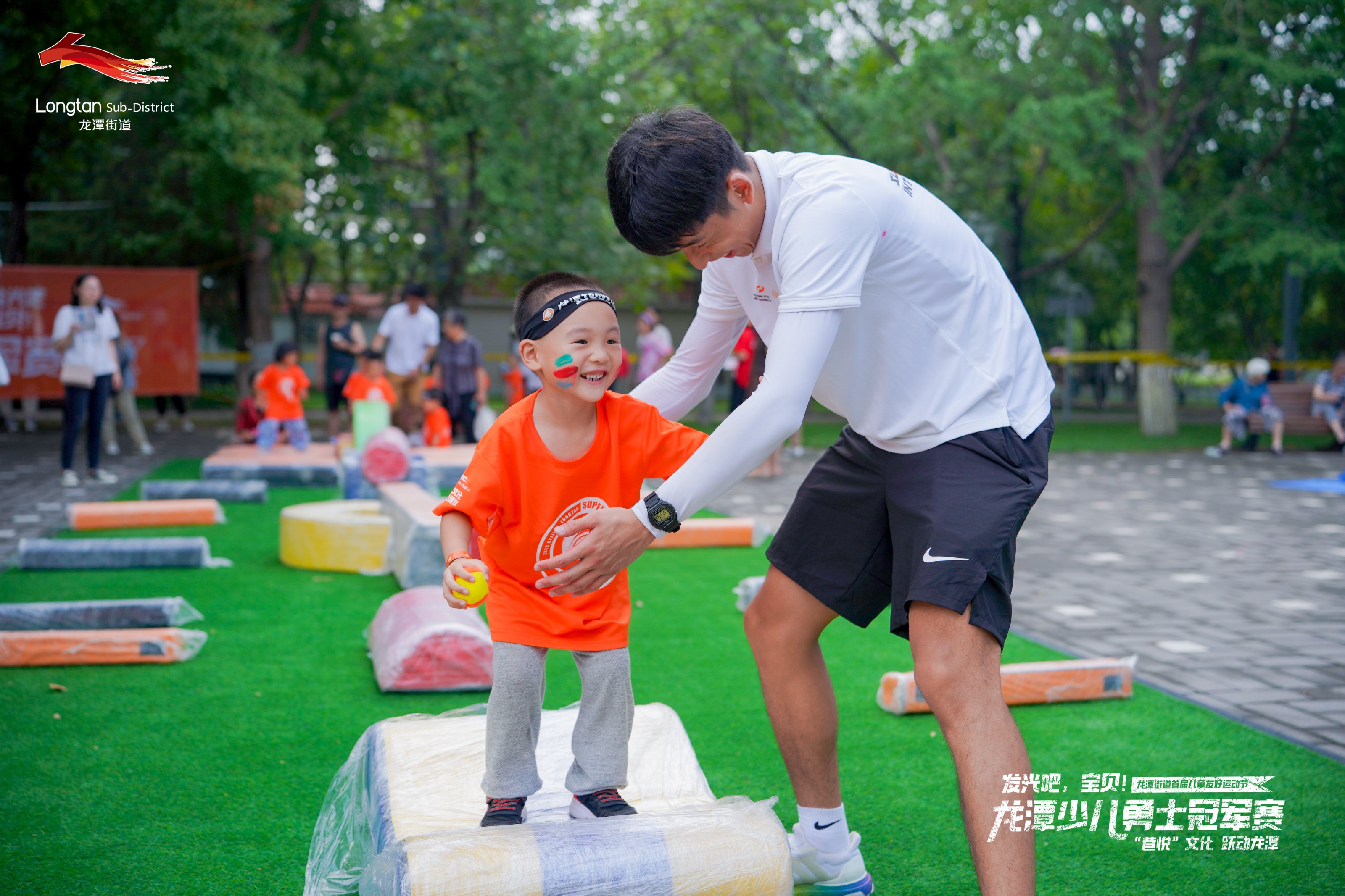 7月27日,由东城区龙潭街道工委、办事处主办,龙潭公园协办,北京幼儿体育协会作为支持单位的“‘巷悦’文化 跃动龙潭——发光吧,宝贝!”龙潭街道首届儿童友好运动节在龙潭公园开幕,活动共有来自龙潭地区的60组3至6周岁幼儿家庭共计100余人参与。